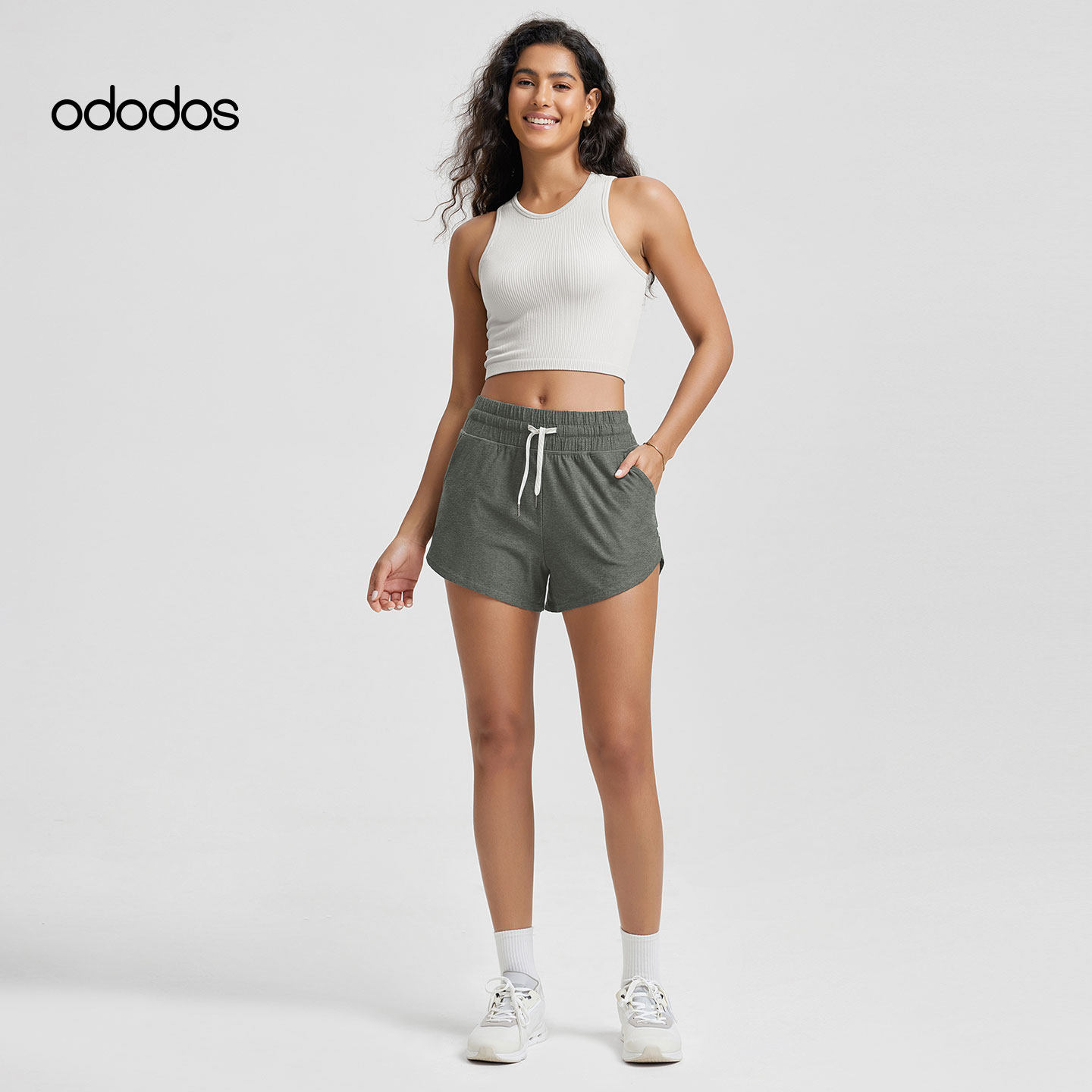 ododos 女士宽松休闲家居服运动可外穿短裤高弹跑步撸铁训练服女