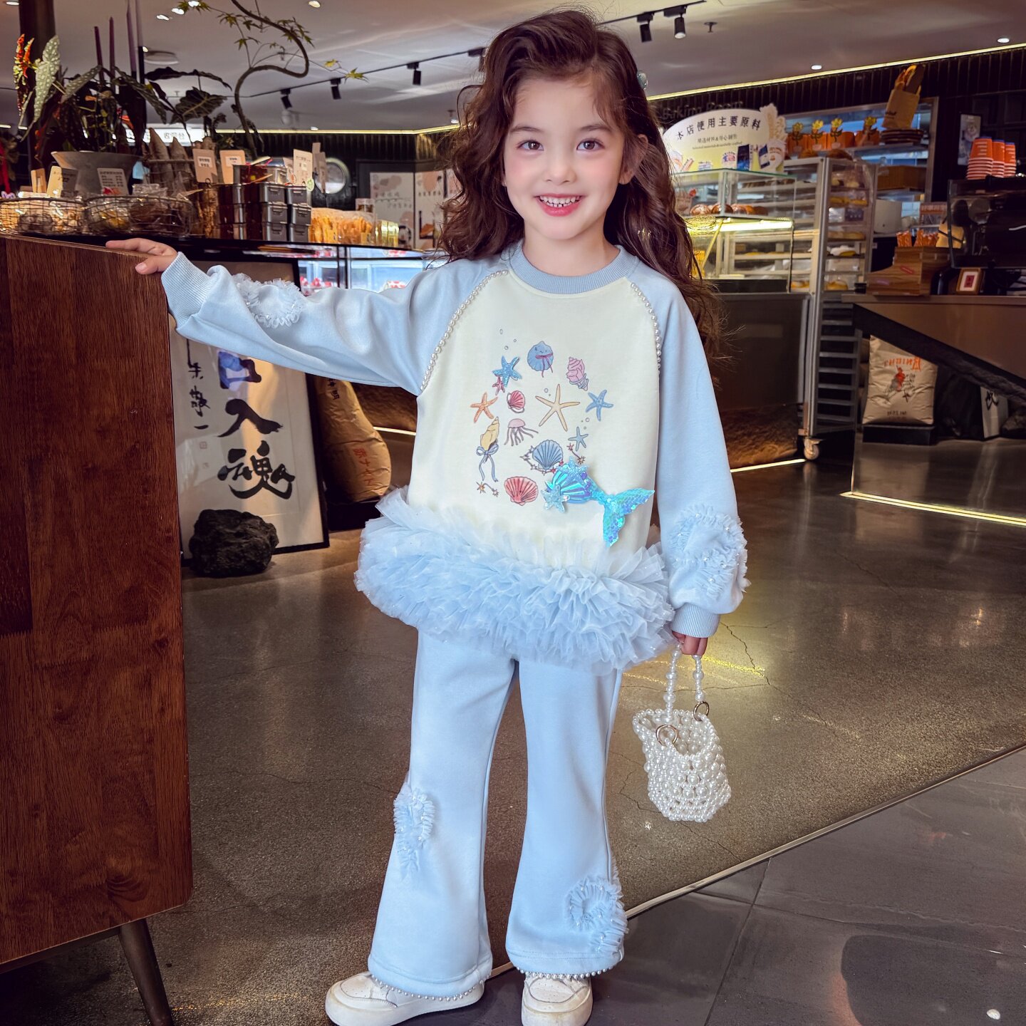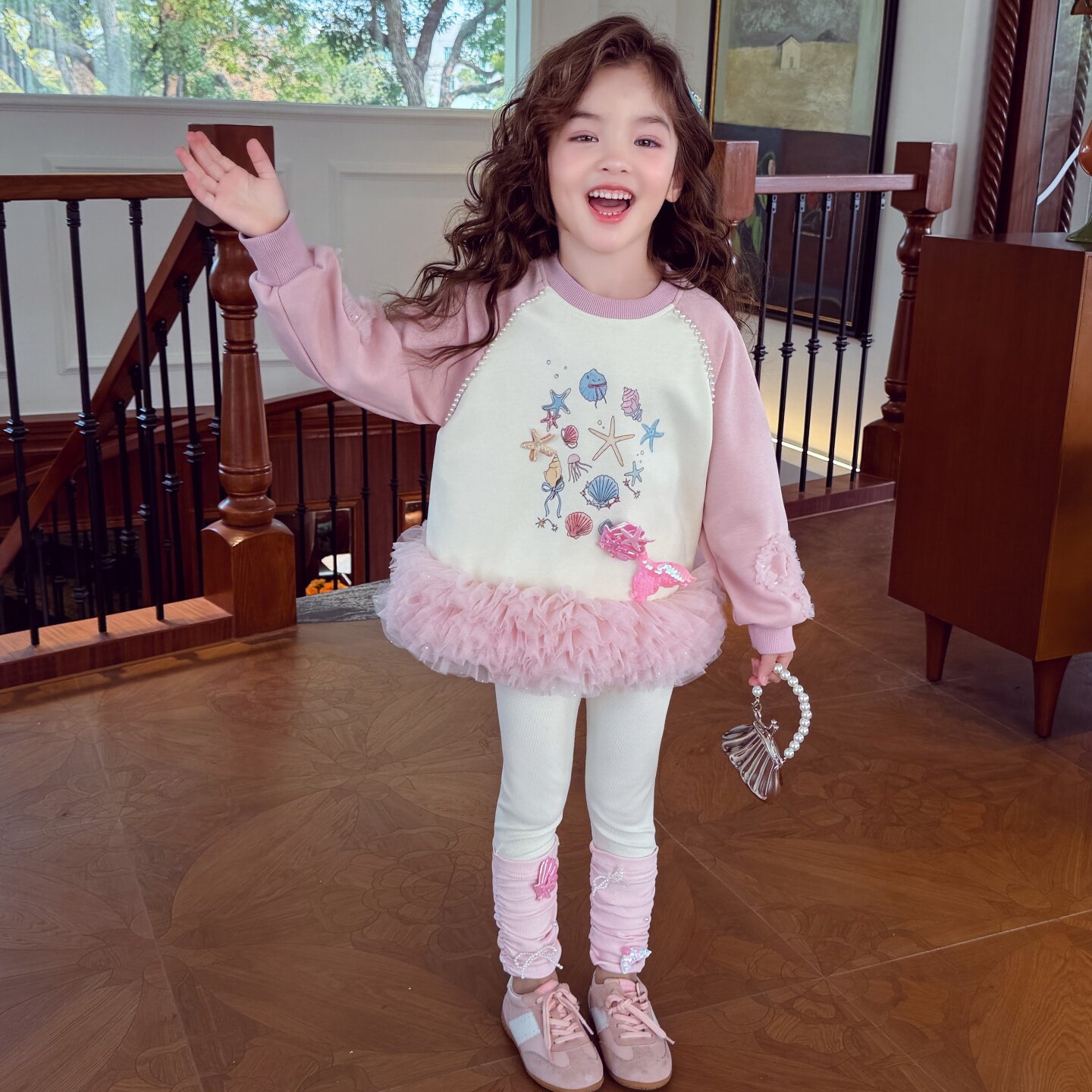 米米哈罗女童套装春装2026新款女孩卫衣喇叭裤套装儿童休闲两件套