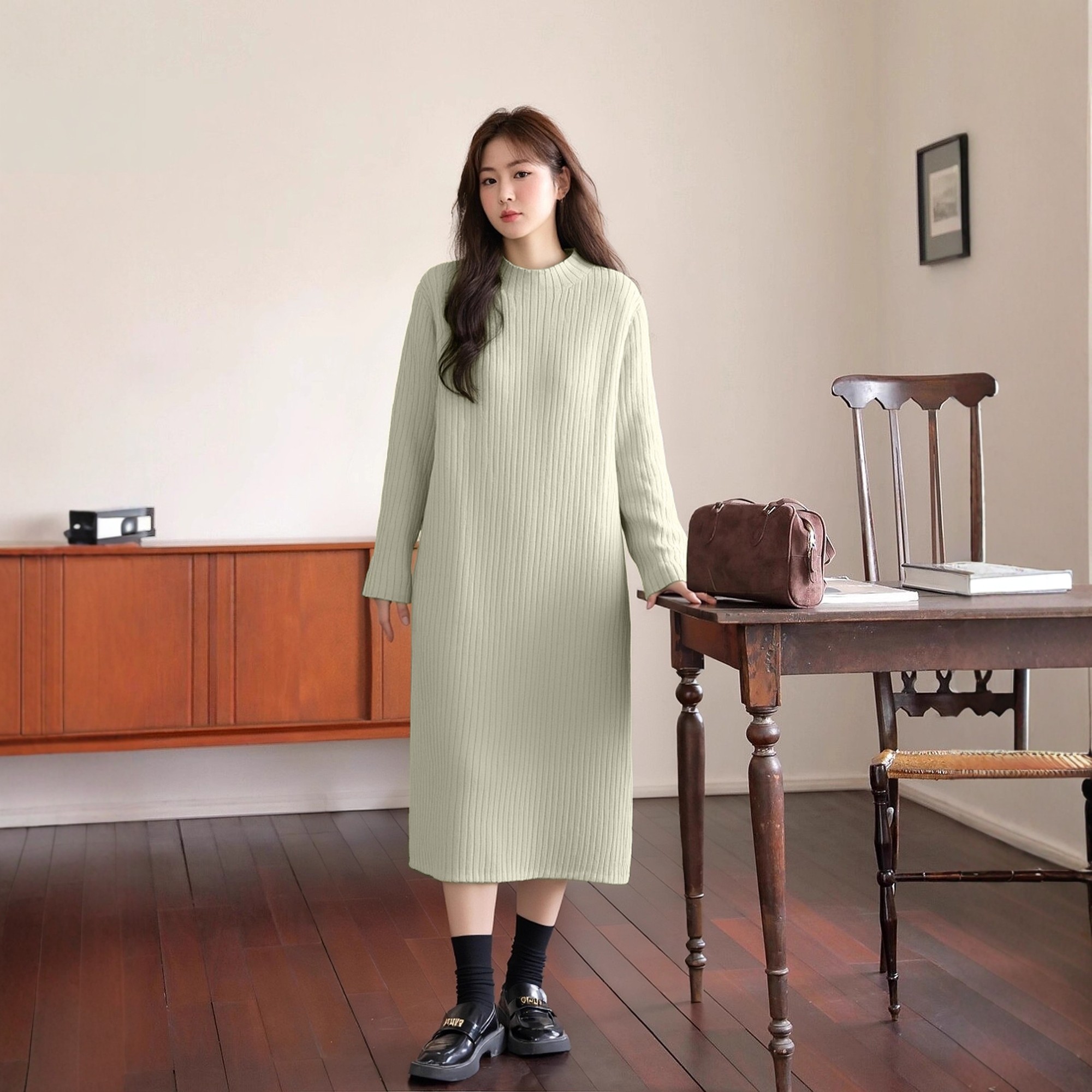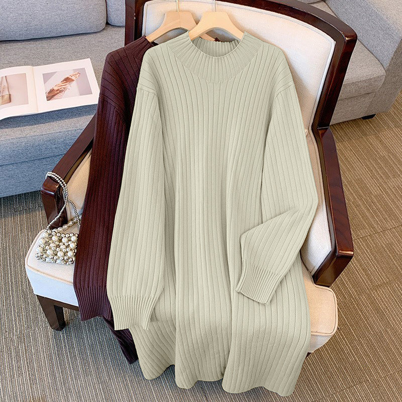 连衣裙女大码胖mm梨型身材早春宽松毛织裙慵懒风外穿打底直筒长裙