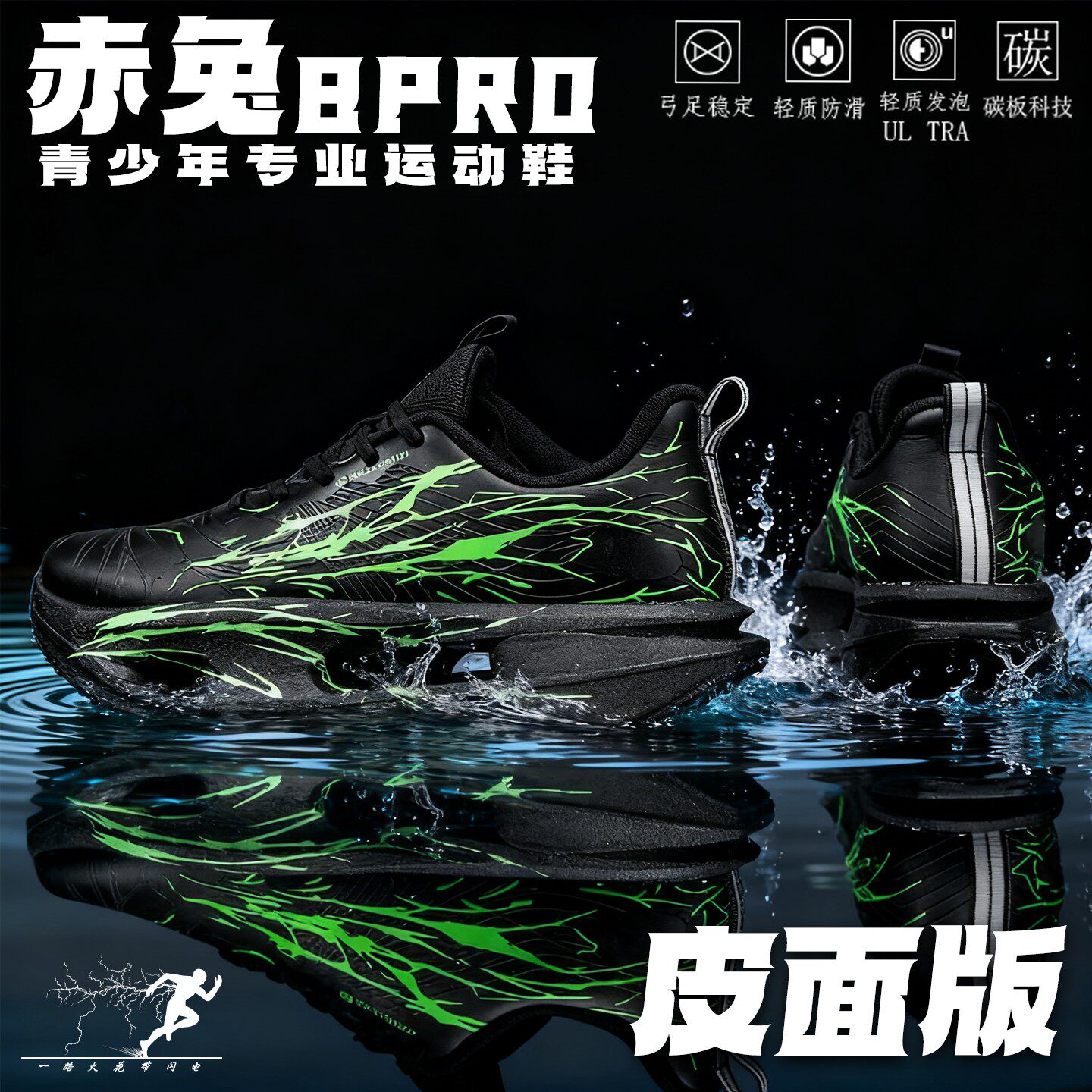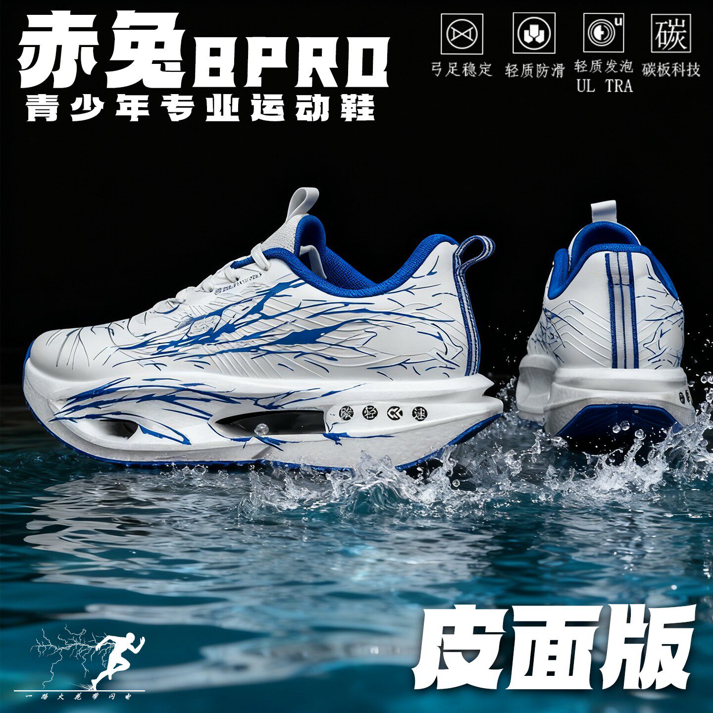 赤8pro皮面防水碳板跑鞋冬季新款防滑减震运动鞋男童加绒跑步鞋