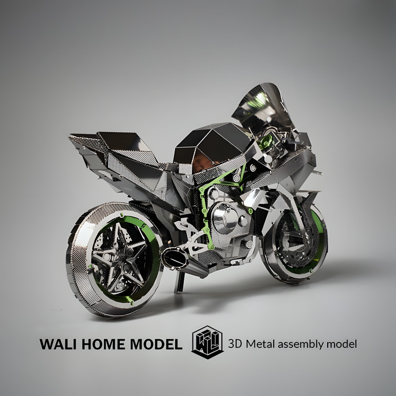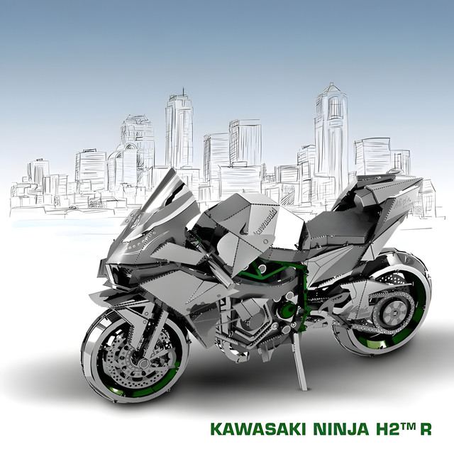 金属拼装模型川崎h2r铁片摩托车积木3d立体拼图成人版手工合金diy