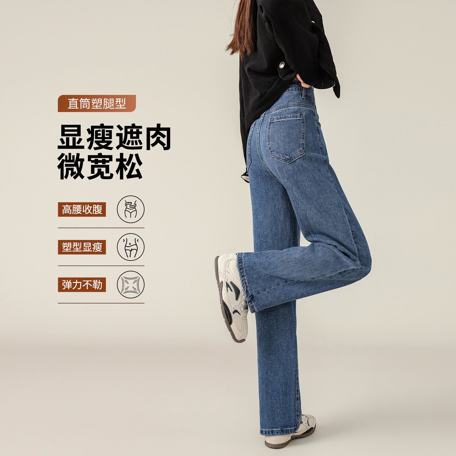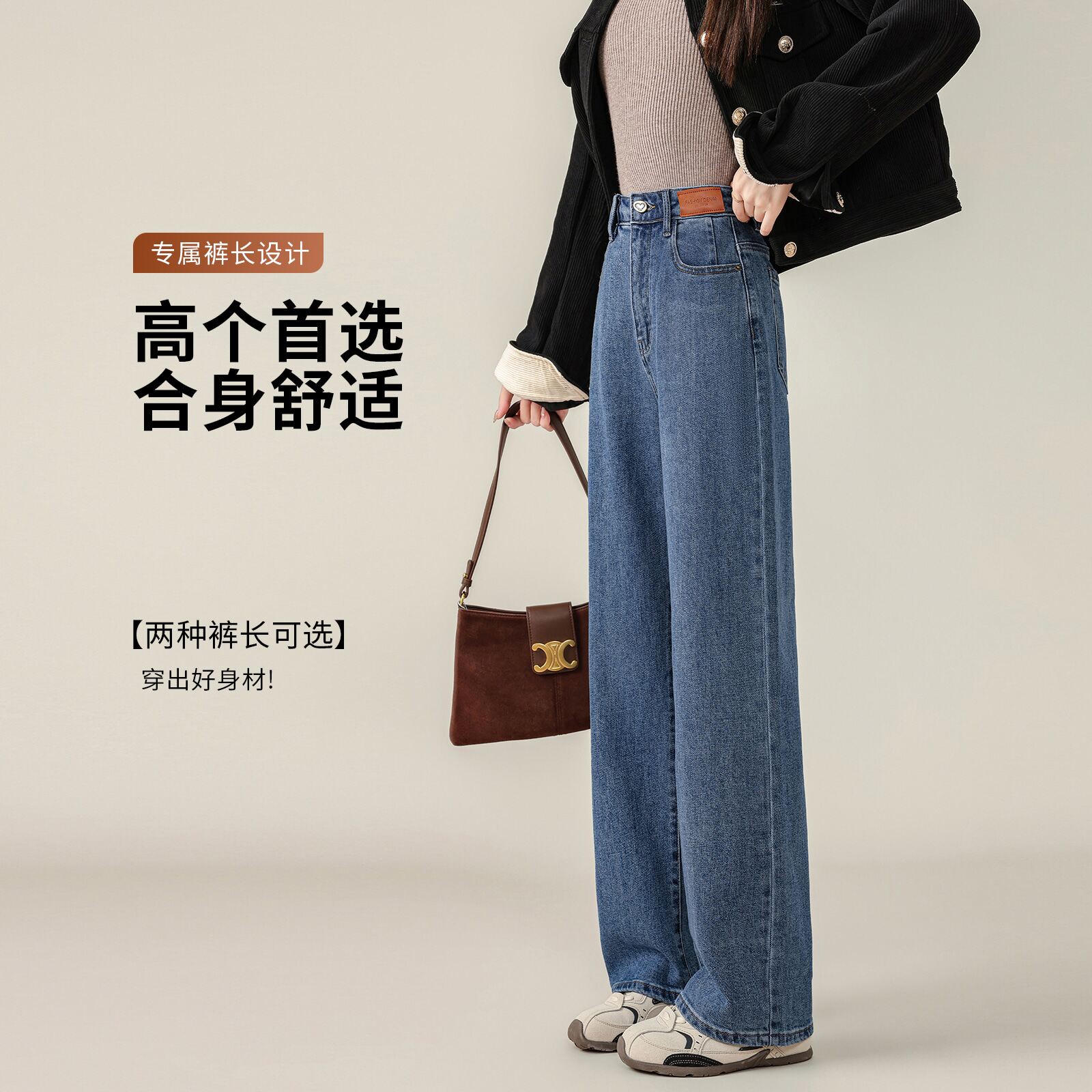 直筒牛仔裤女2026新款高腰冬季加绒加厚加长款高个子窄版阔腿裤子