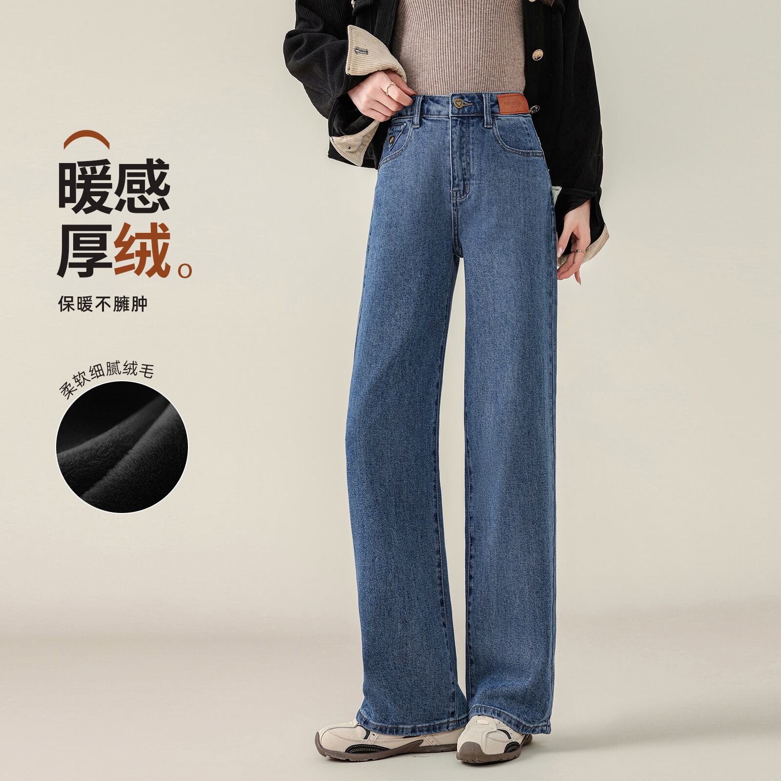 311线报网描述:加绒牛仔裤女2025新款 裤子加长款高个子