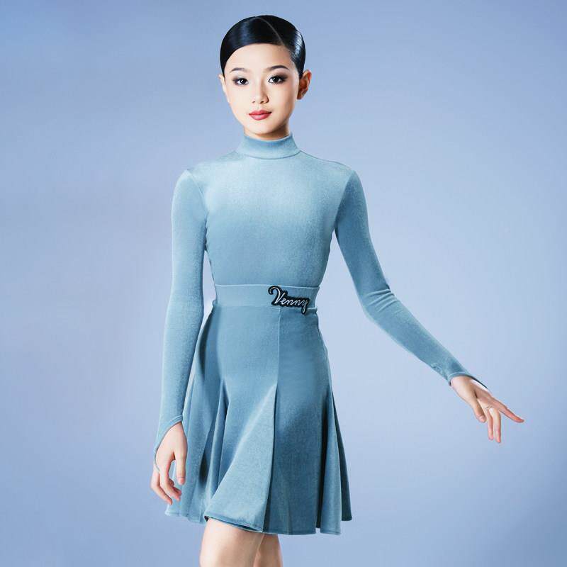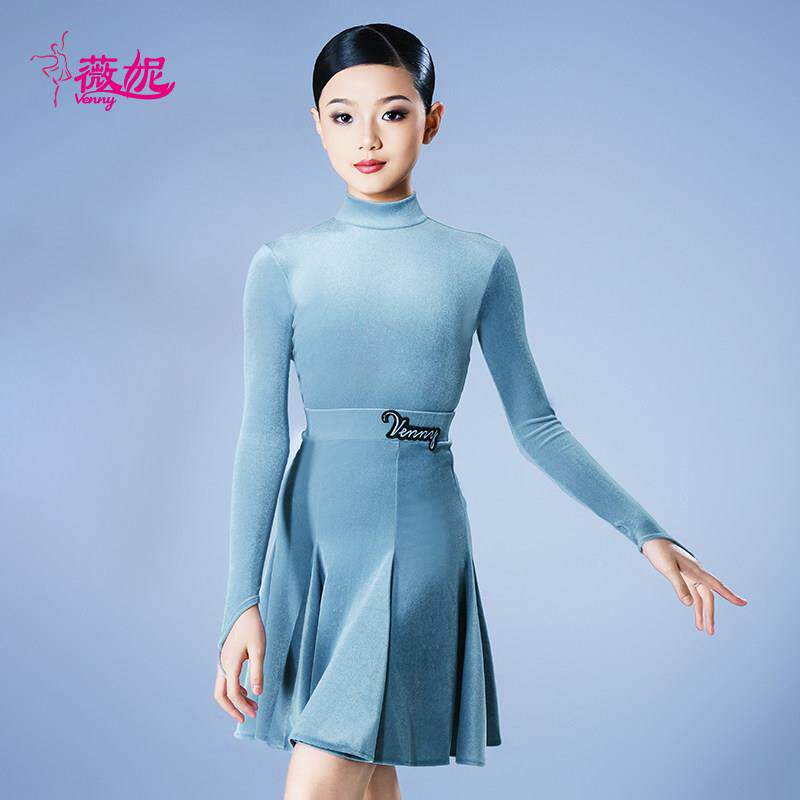 定薇量妮拉丁舞比赛规定女童专PMD业丝服绒无鱼骨体协赛事专用身
