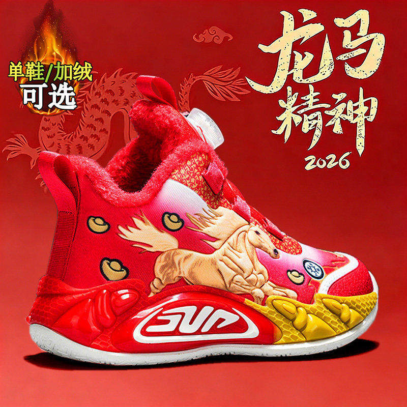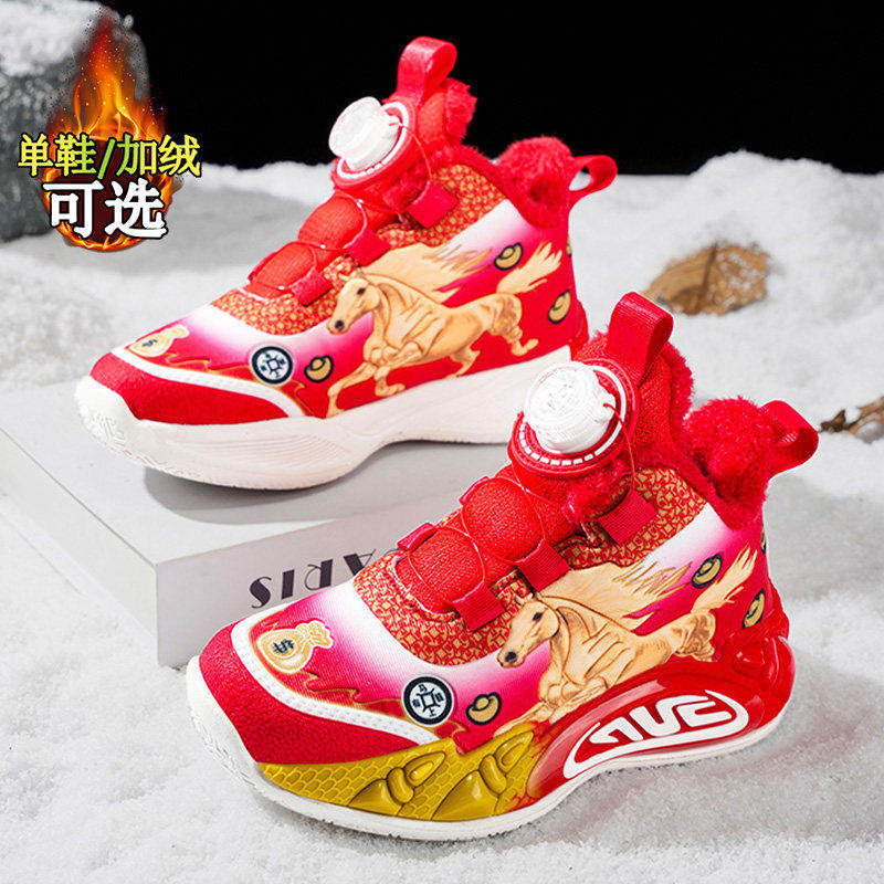 儿童篮球鞋本命年红色男童鞋子秋冬2026新款防水加绒12岁男孩棉鞋