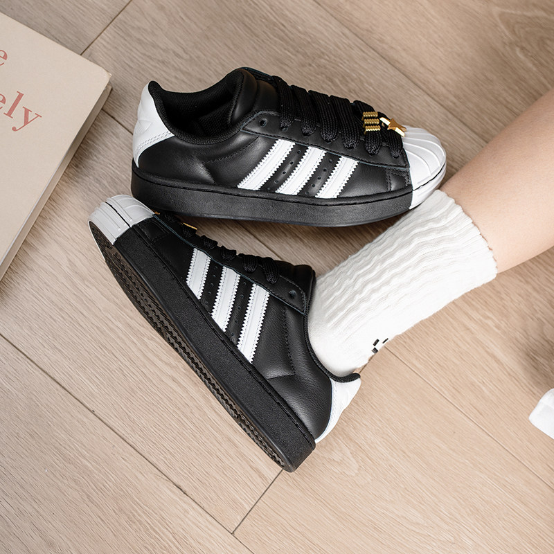 阿迪达斯女鞋低帮板鞋黑色贝壳头休闲鞋26新款三叶草运动鞋JR7444