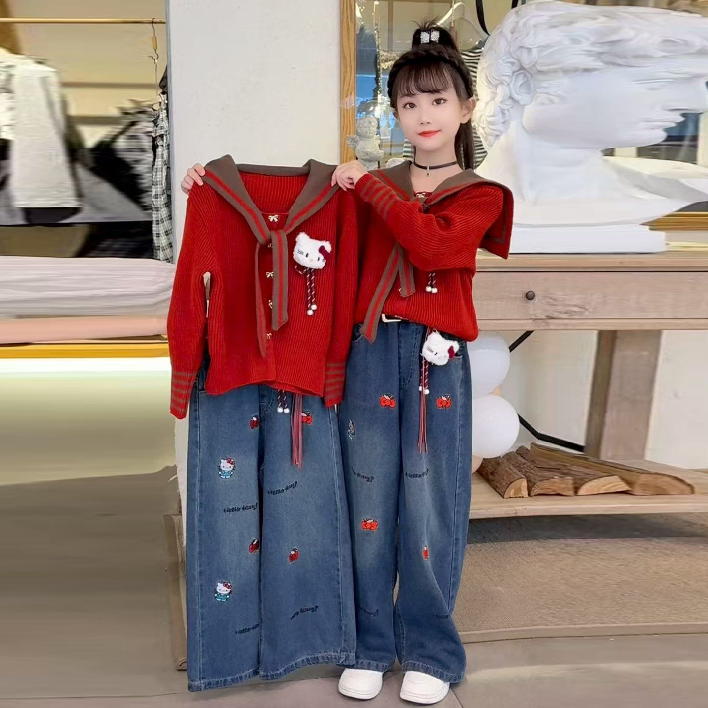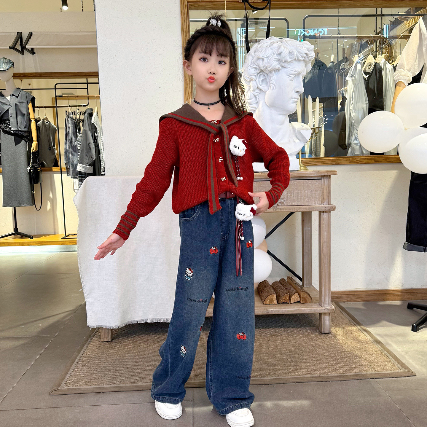 女童春秋季套装2026新款儿童洋气中大童春秋开衫毛衣牛仔裤春秋装
