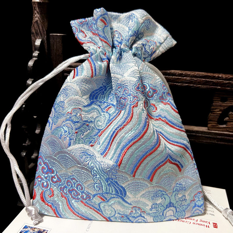 复古风刺绣织锦段首饰袋双层束口文玩手串防尘袋锦袋手镯收纳布袋
