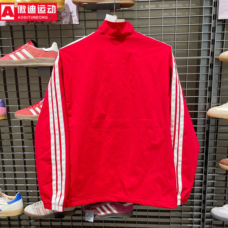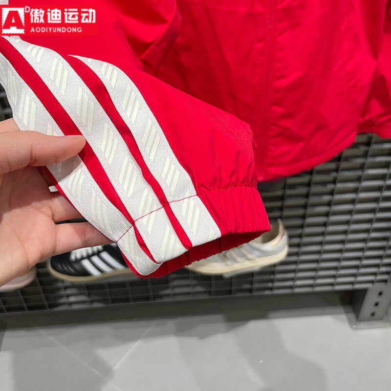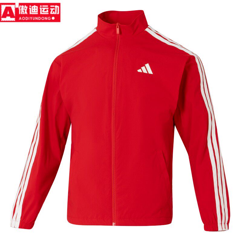 阿迪达斯男装外套2026春季新款新年红立领防风休闲运动夹克KR2519