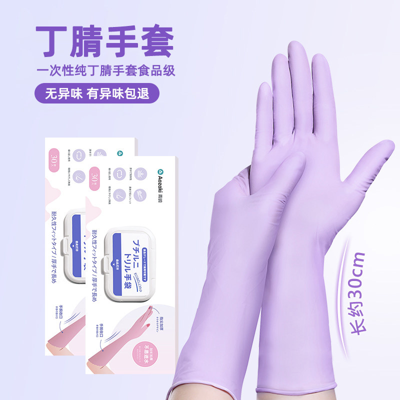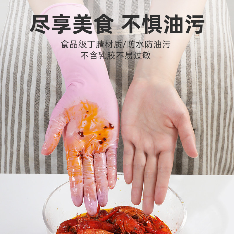 日本丁腈手套家务洗碗厨房耐用女士加长耐磨专用加厚食品级一次性