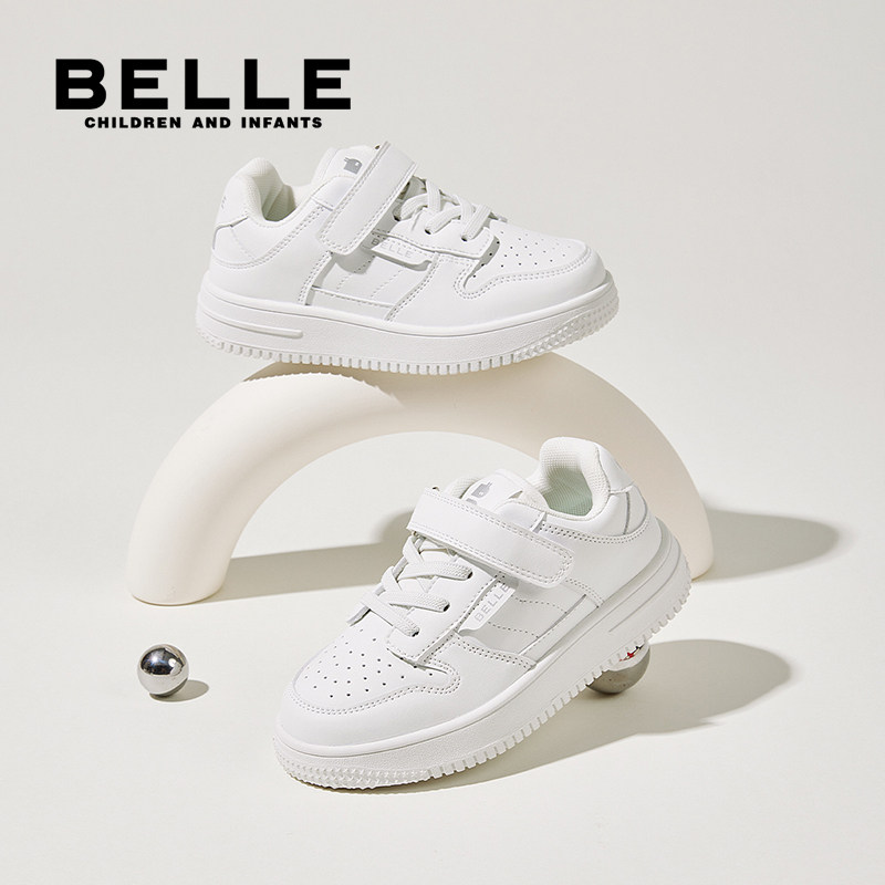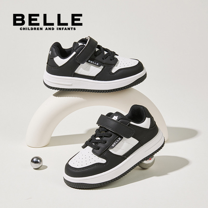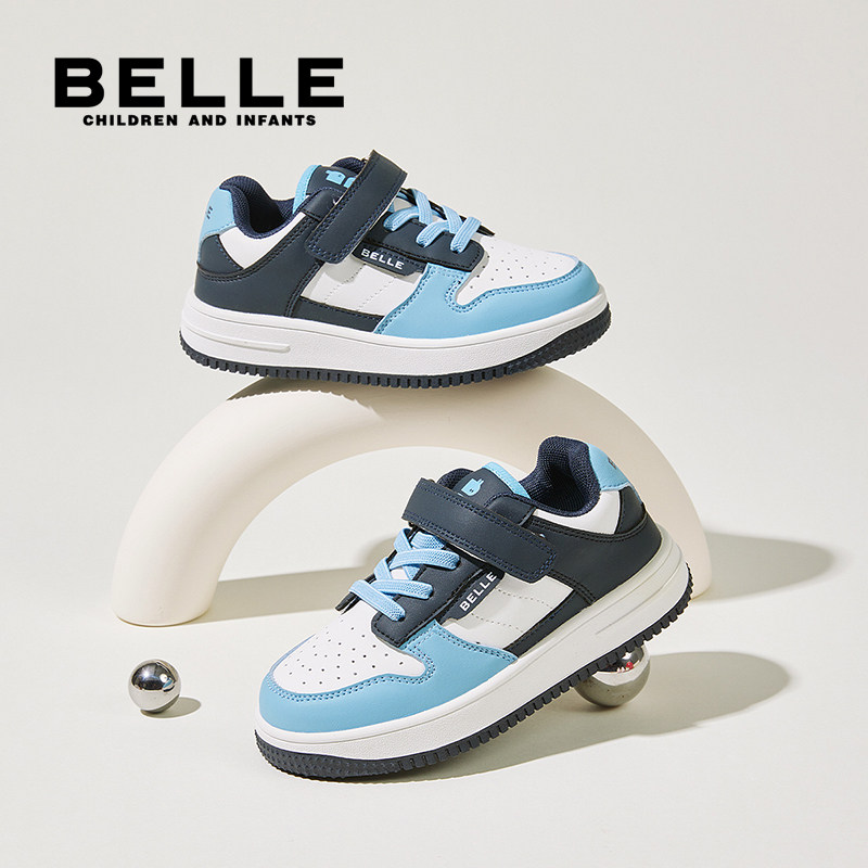 百丽童鞋男童板鞋运动鞋子新款儿童鞋透气皮面女童防滑高帮软底