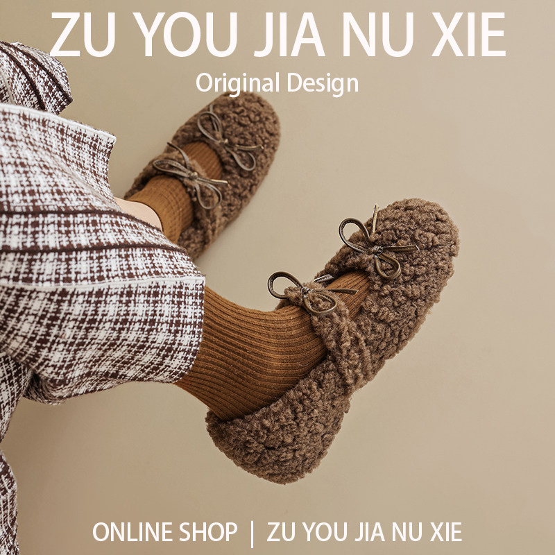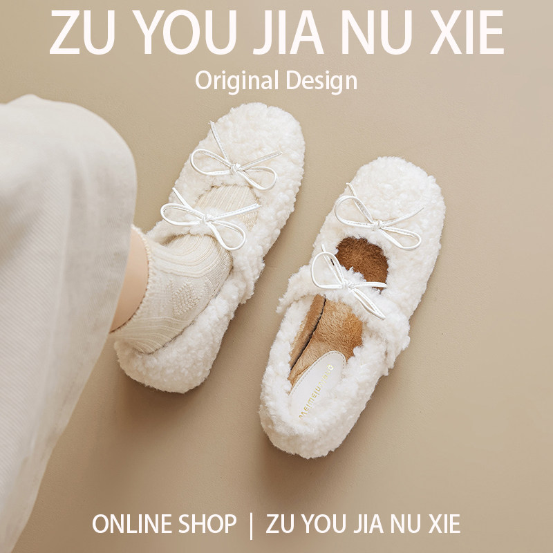 羊羔毛白色内增高毛毛鞋女冬外穿一脚蹬玛丽珍鞋女大码女鞋41到43