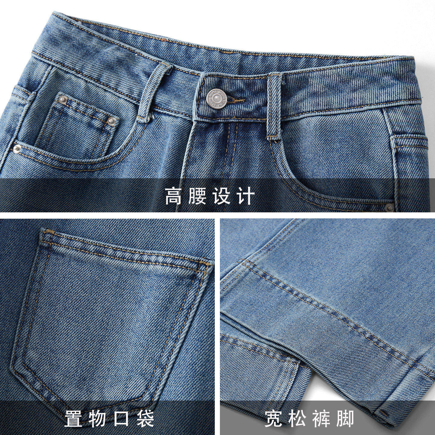小个子窄版直筒牛仔裤女2026早春新款高腰遮胯九分浅蓝色阔腿裤子