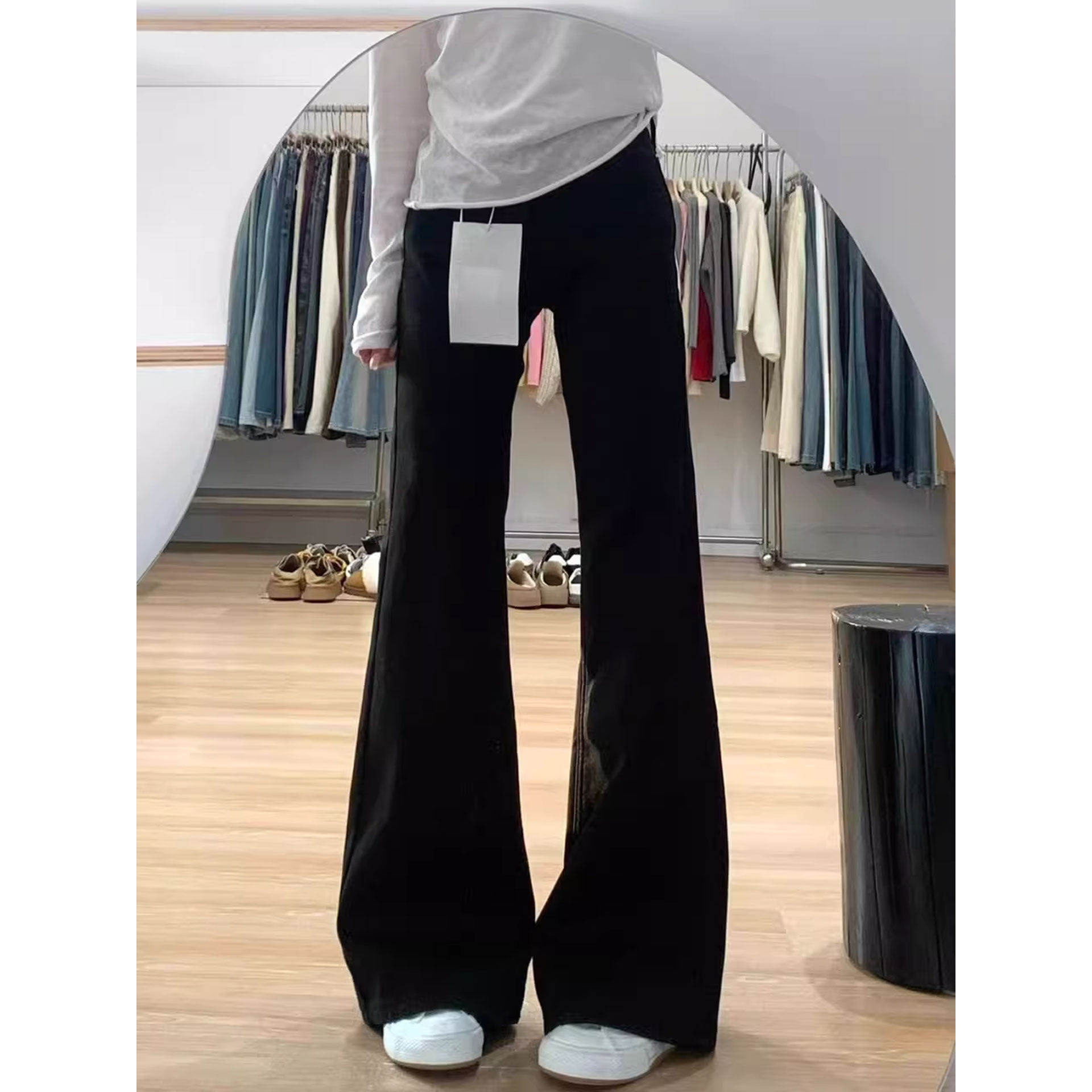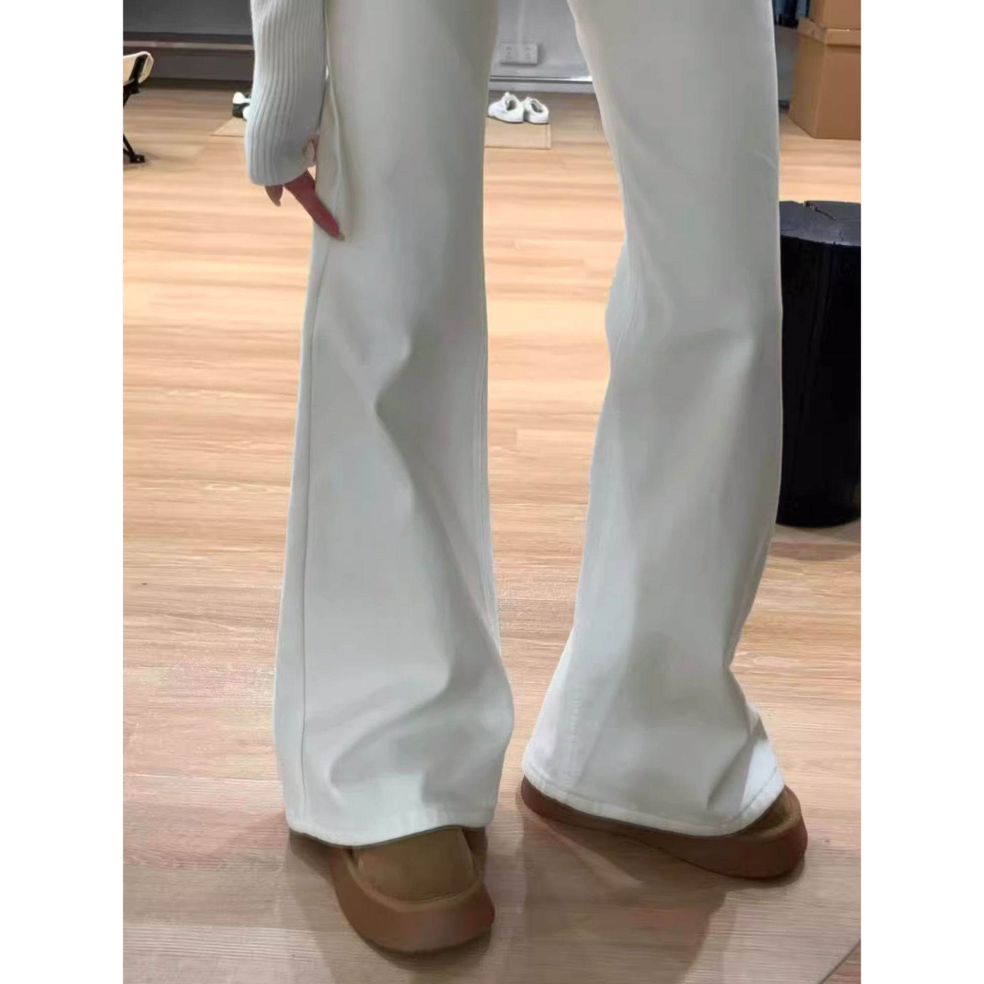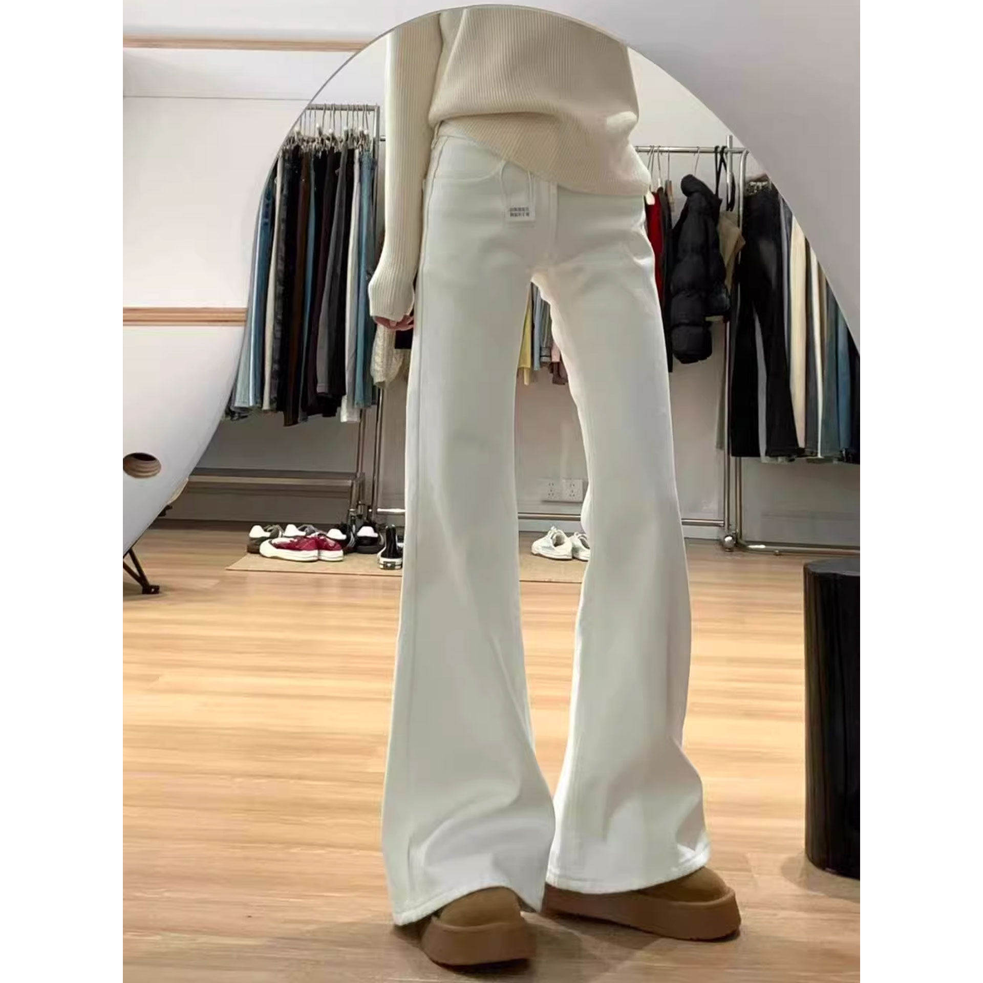 白色微喇牛仔裤春季女2026新款大码胖mm显瘦弹力直筒喇叭马蹄裤子