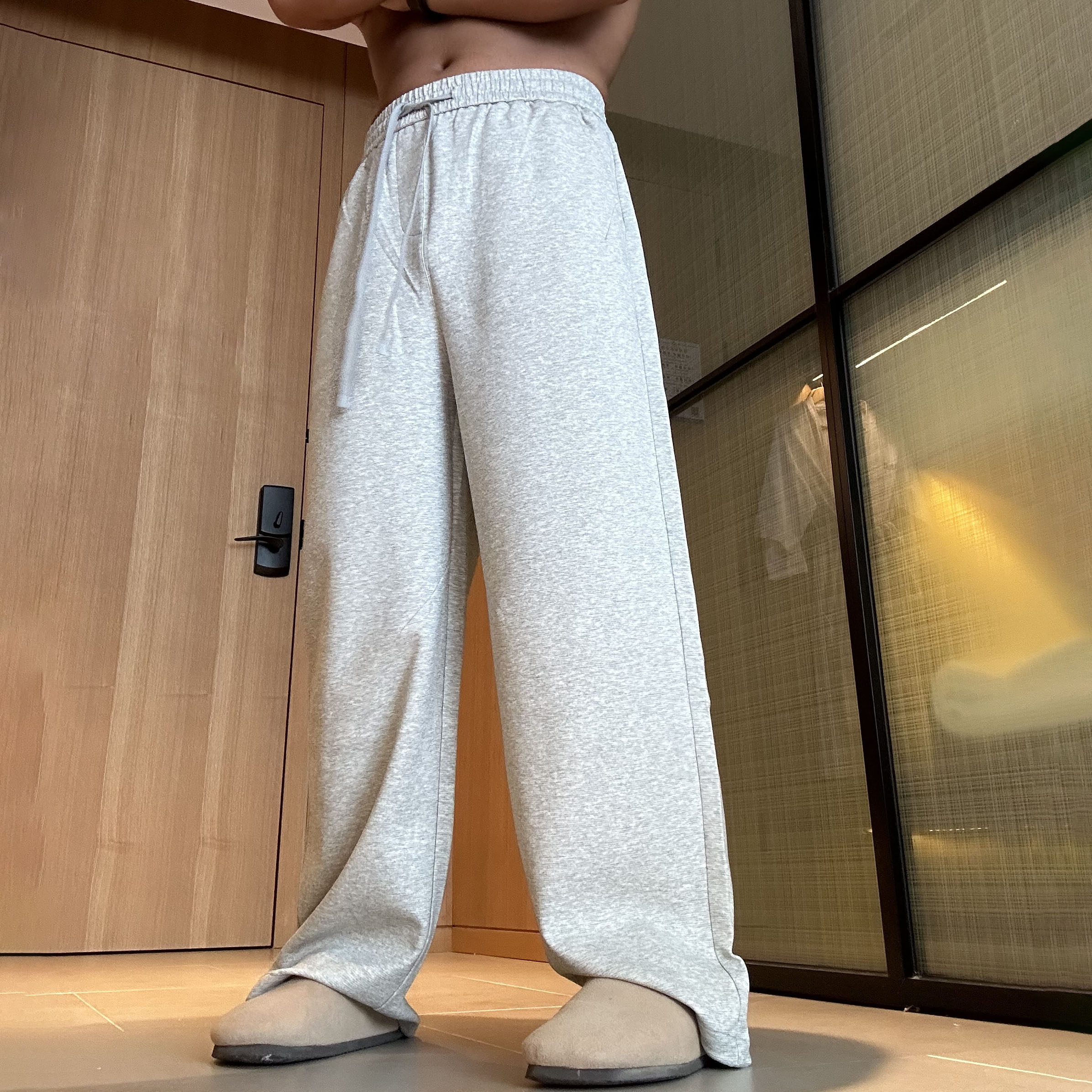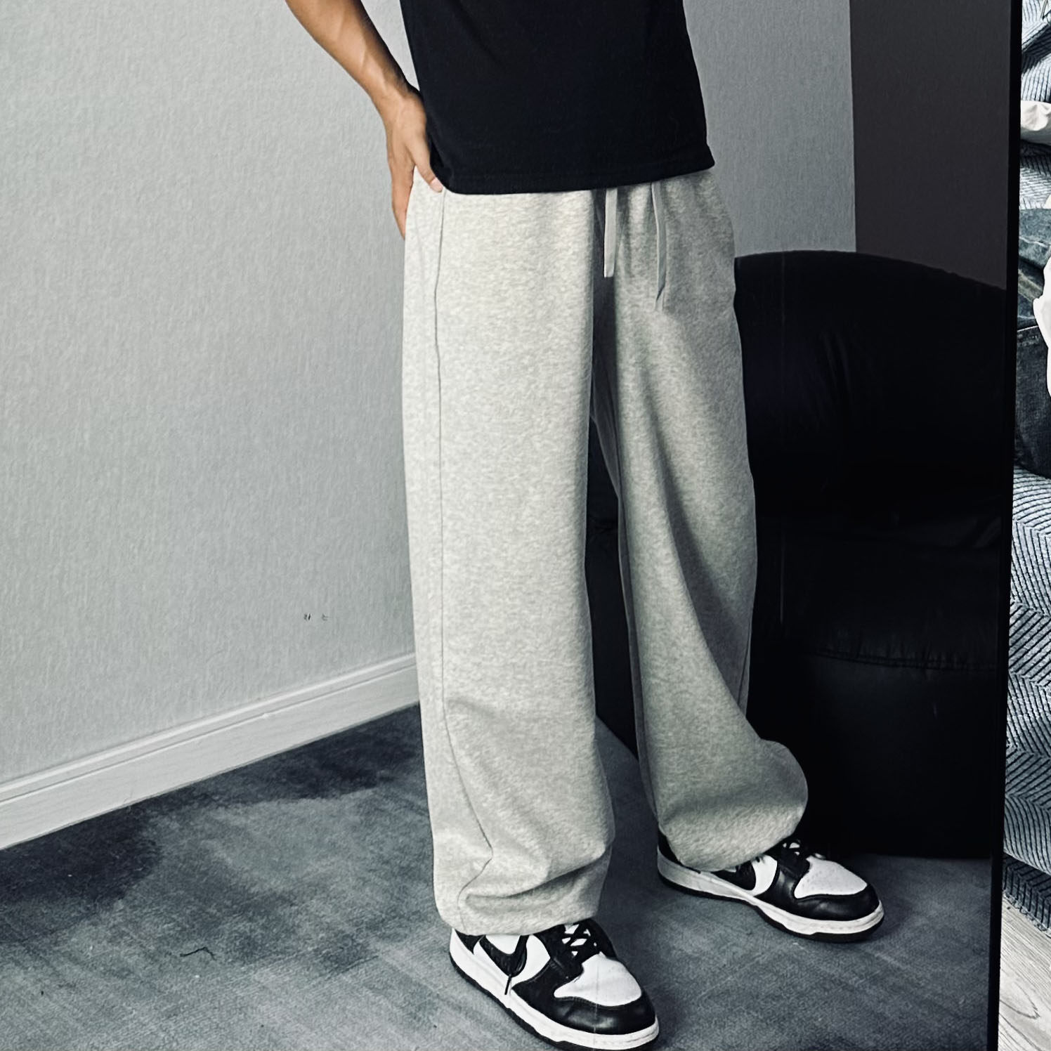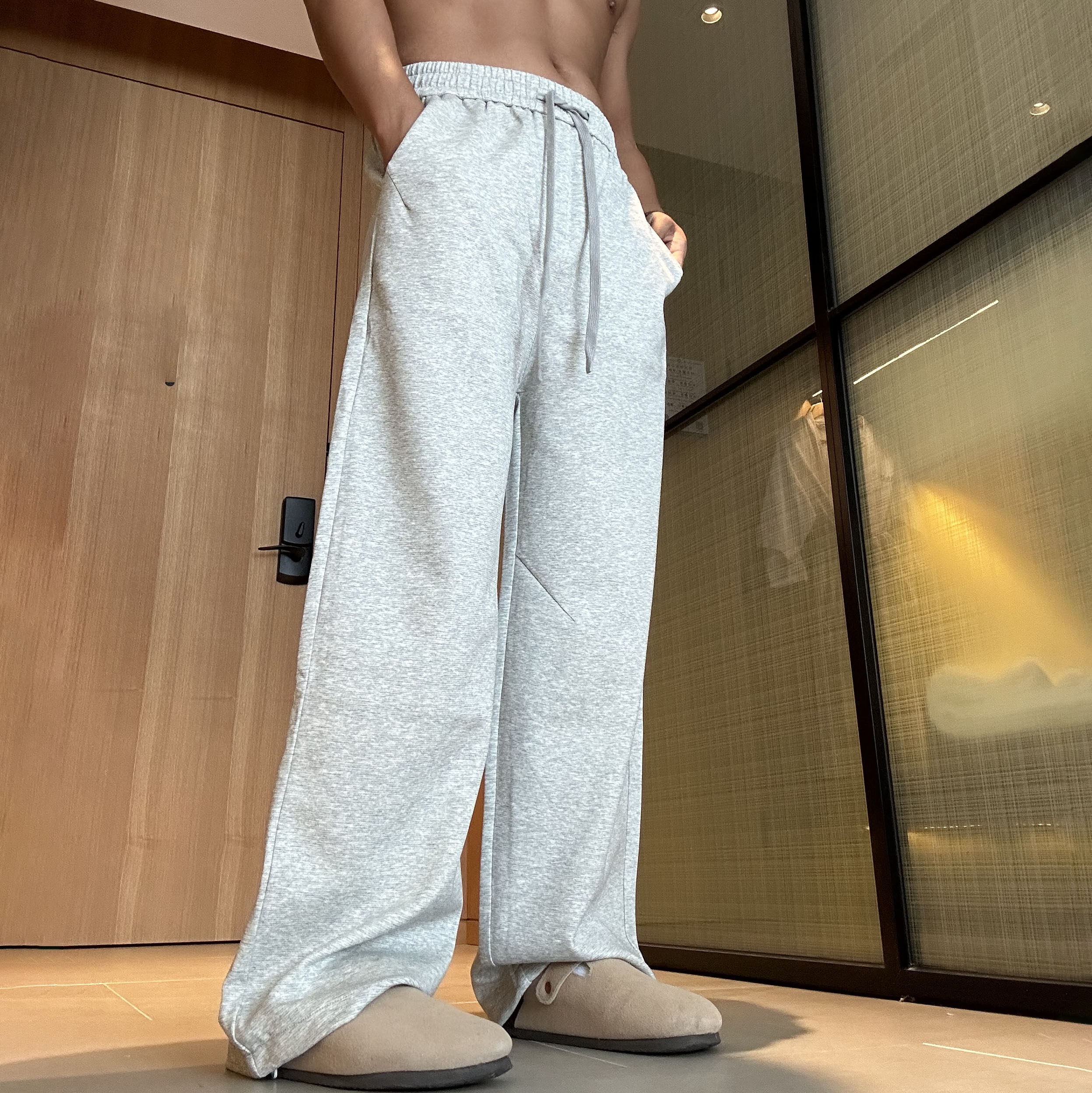 LFG 浅灰色美式卫裤男款夏季青少年酷帅裤子加长运动直筒休闲裤