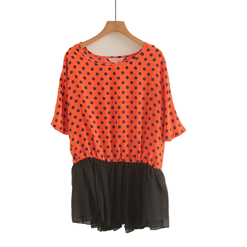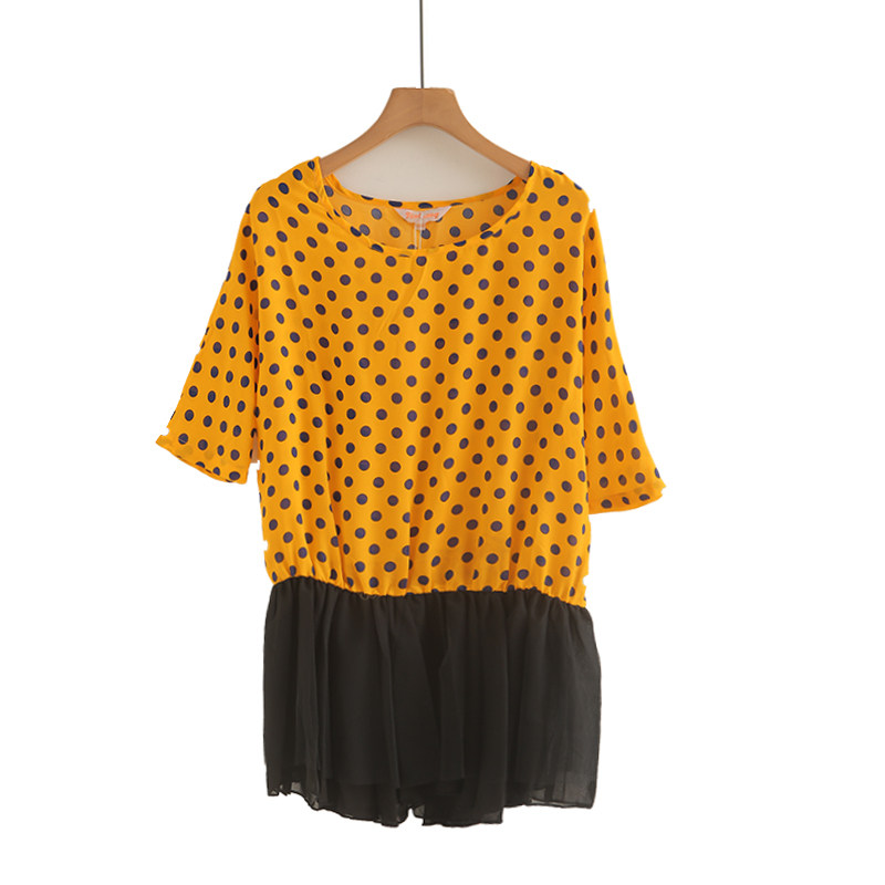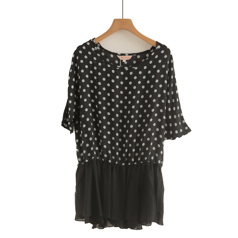 蝙蝠袖胖MM圆点雪纺短款连衣裙夏季薄款宽松显瘦拼接上衣