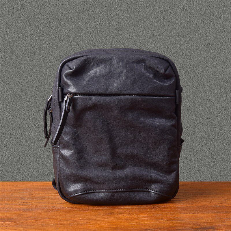 二十四街复古褶皱真皮斜挎包男士牛皮单肩包竖款手机包高级感挎包