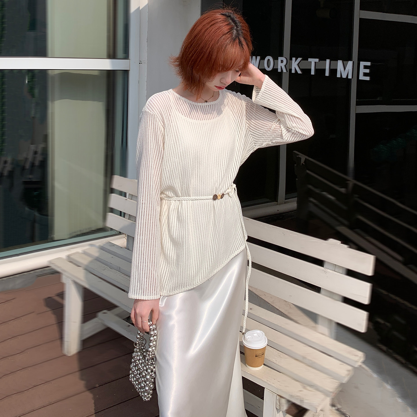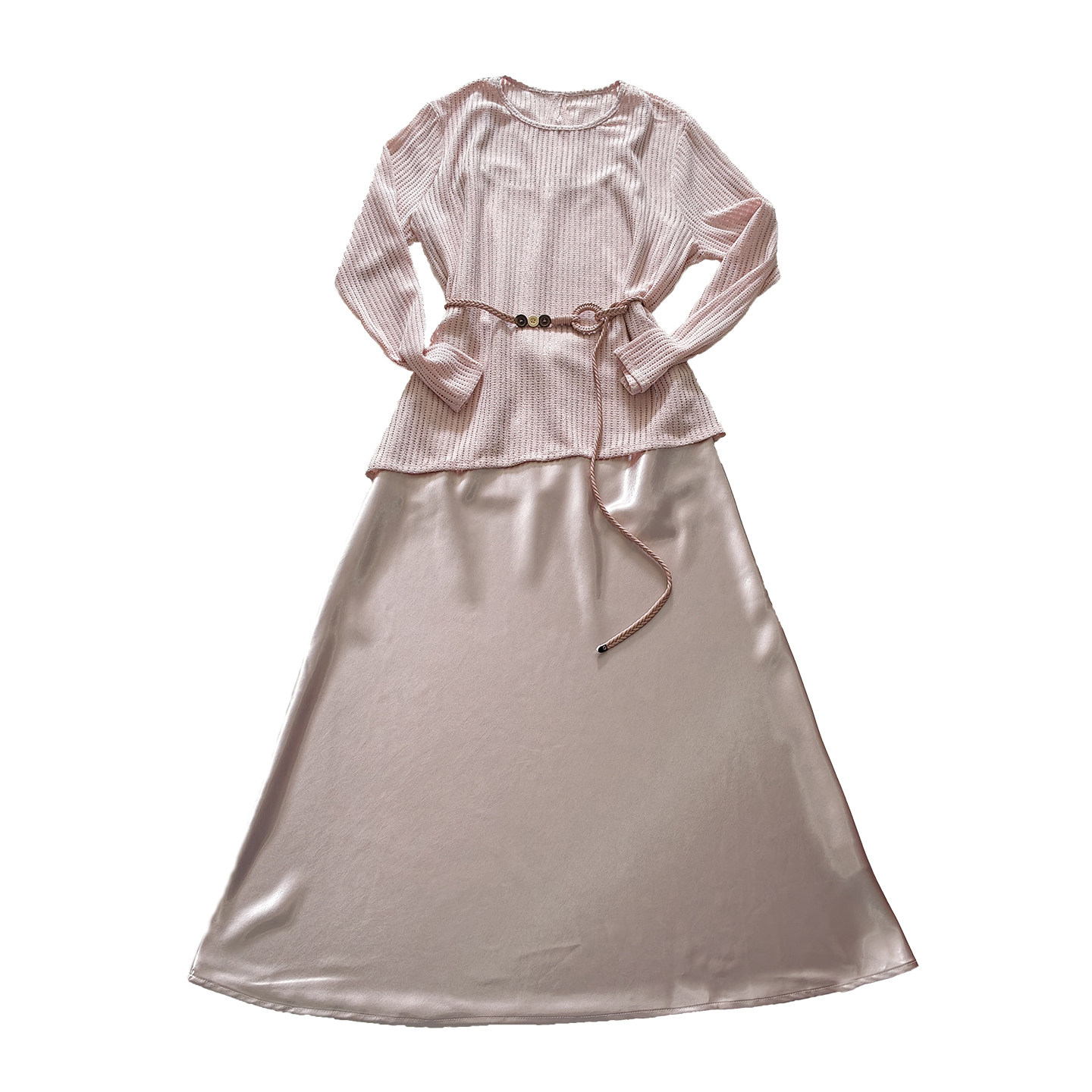 轻奢风针织罩衫吊带连衣裙两件套女春夏新款长袖气质显瘦温柔长裙