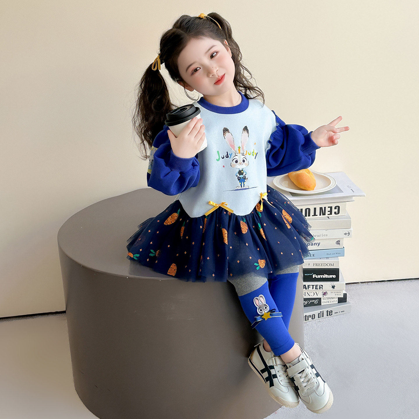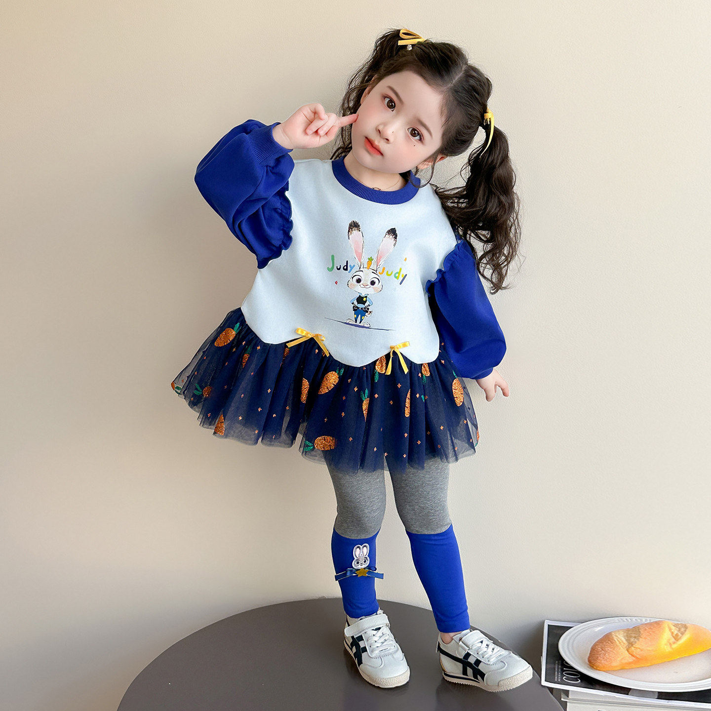 女童春秋款运动套装2026新款洋气时髦儿童女宝宝春季春装蓝兔卫衣