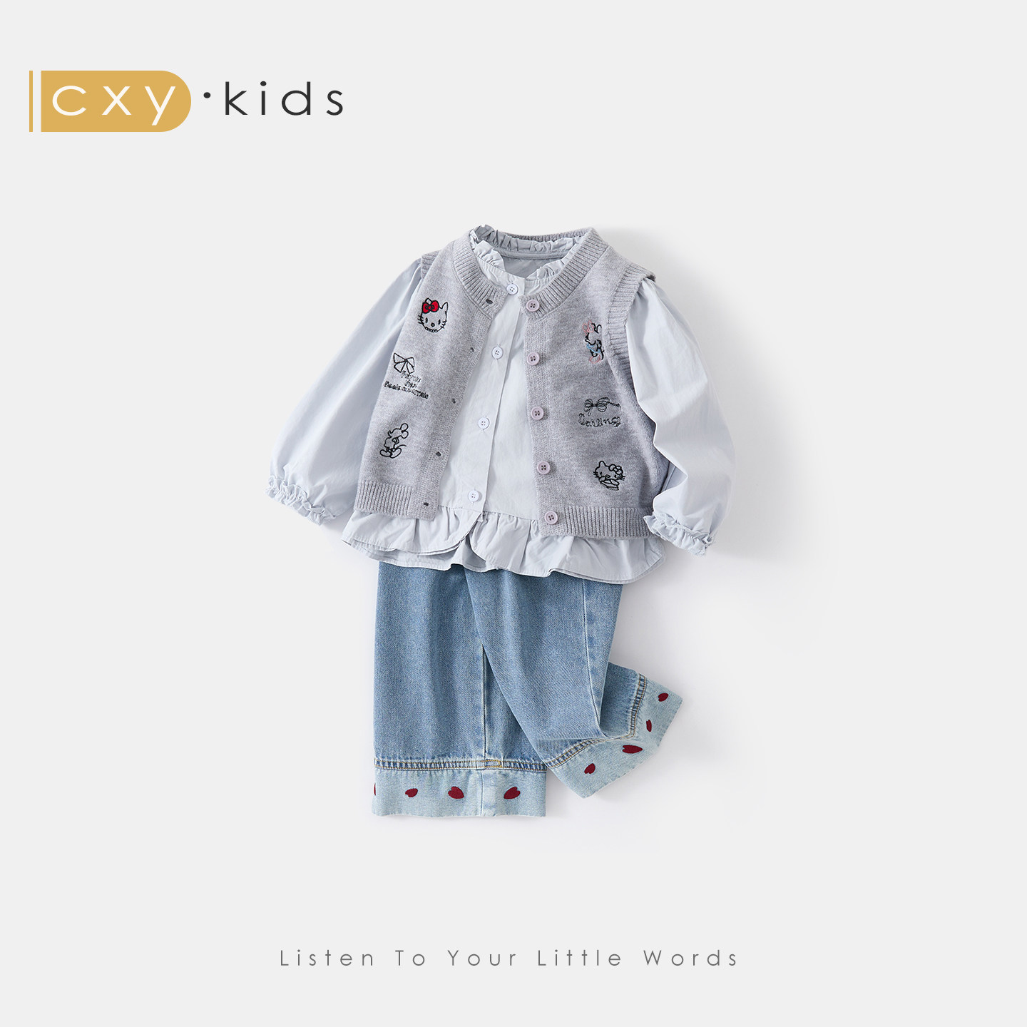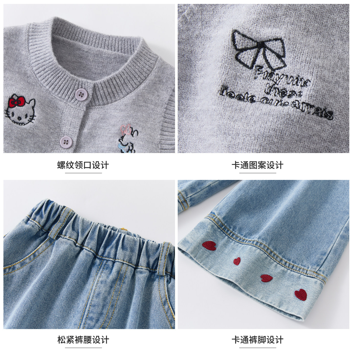 女宝韩系春装套装2026新款女童超好看针织马甲衬衫牛仔裤儿童衣服
