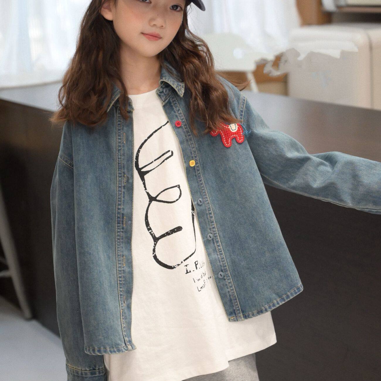 童装男女童牛仔衬衫2026新款洋气儿童春装韩系上衣外套中大童衬衣