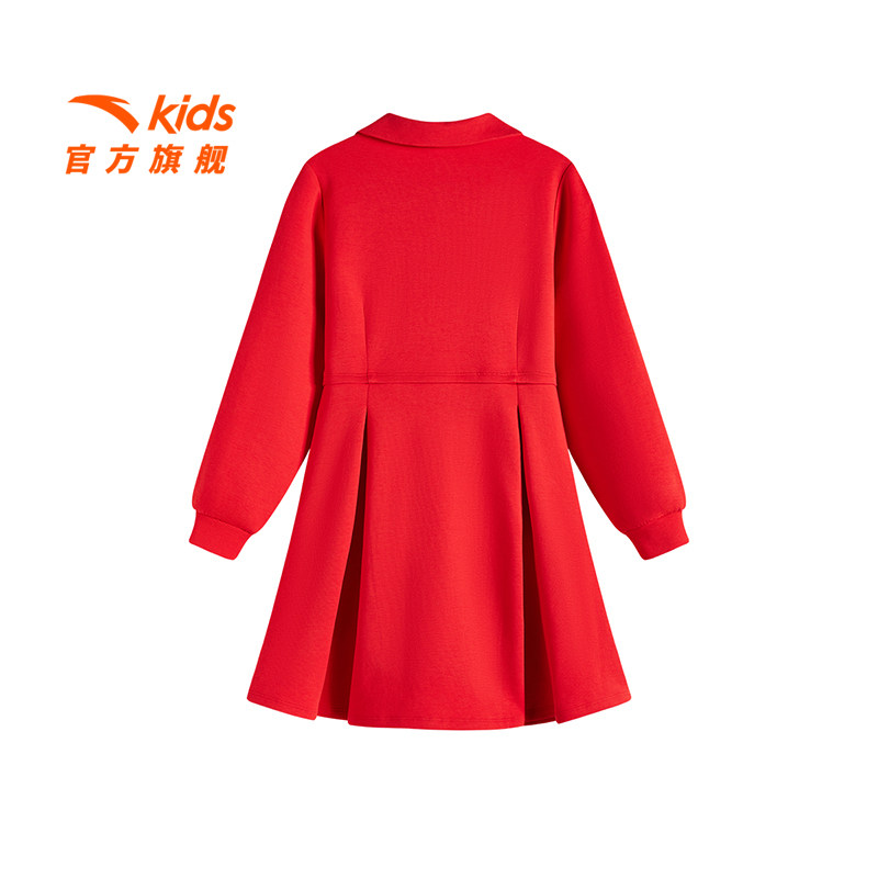 安踏儿童女大童针织连衣裙2026春秋新款舒适百搭中大童红色长袖裙