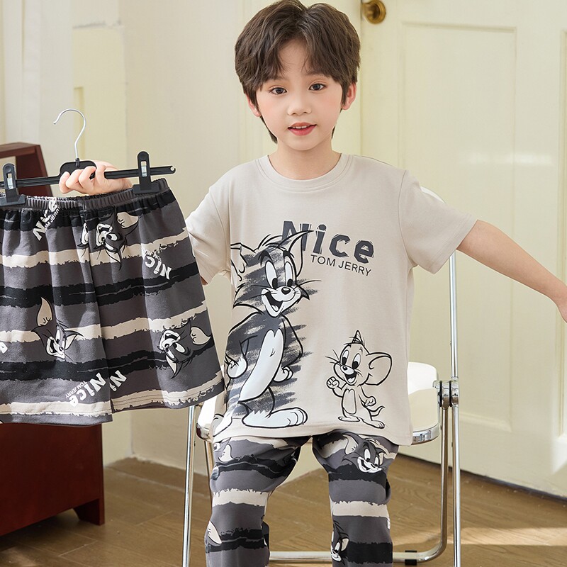 儿童睡衣男童夏季短袖长裤纯棉薄款夏天男孩中大童春秋家居服套装