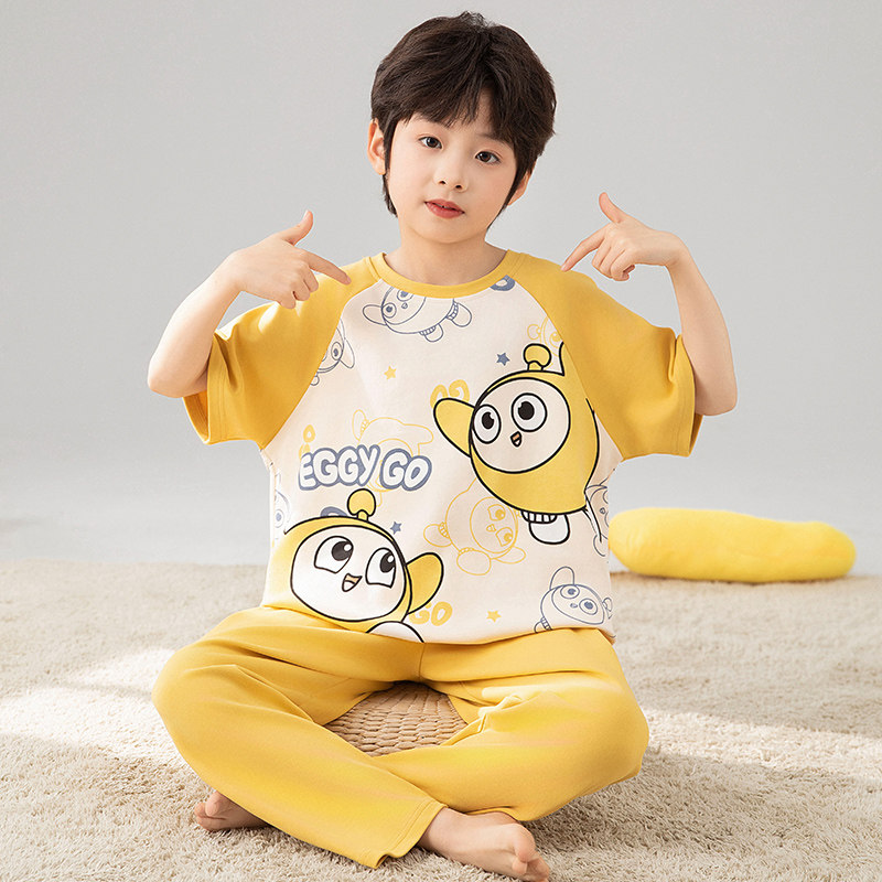 男童睡衣儿童夏季纯棉长裤短袖2025新款男孩青少年春秋家居服套装