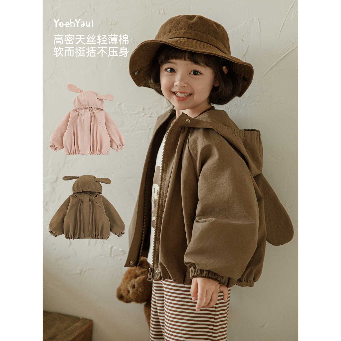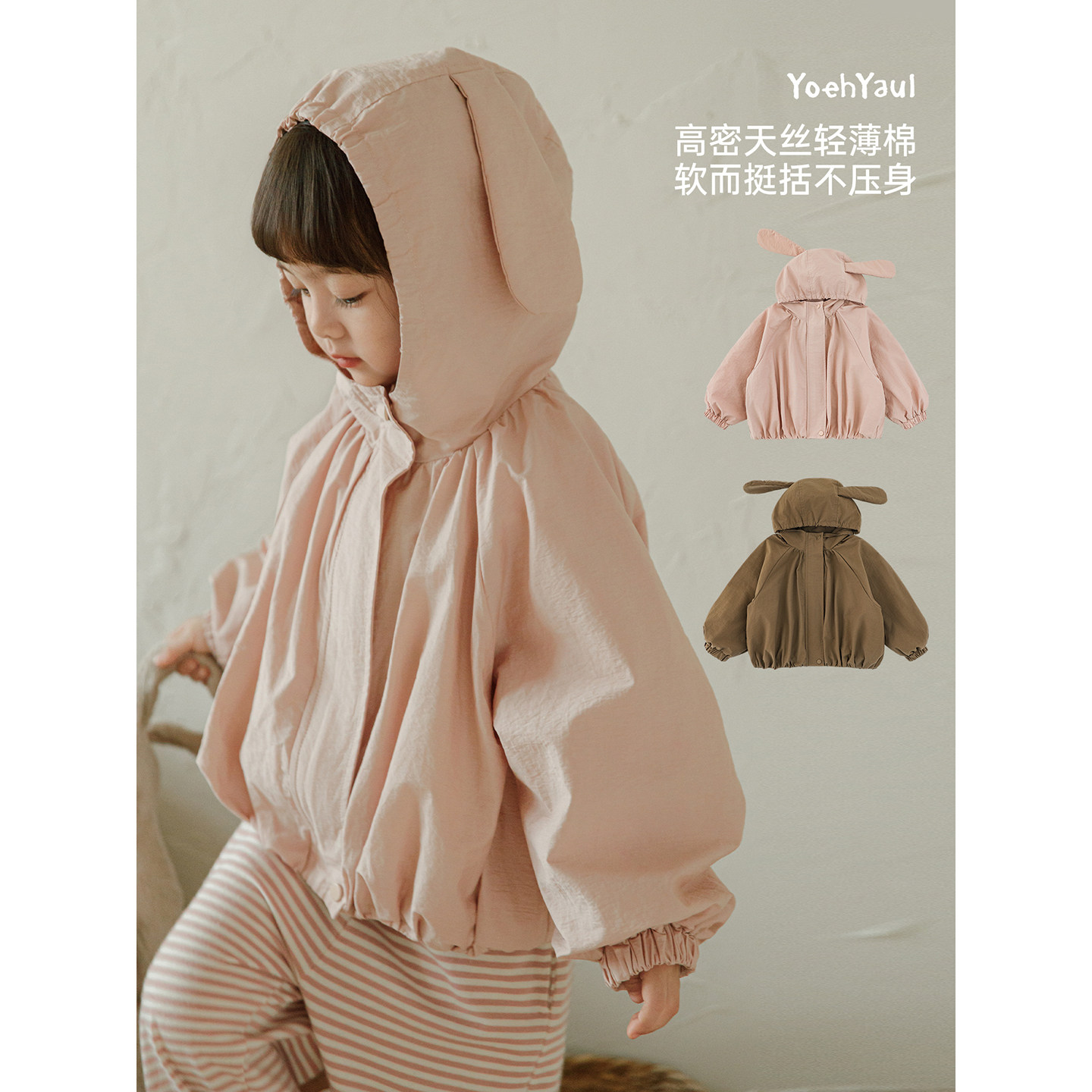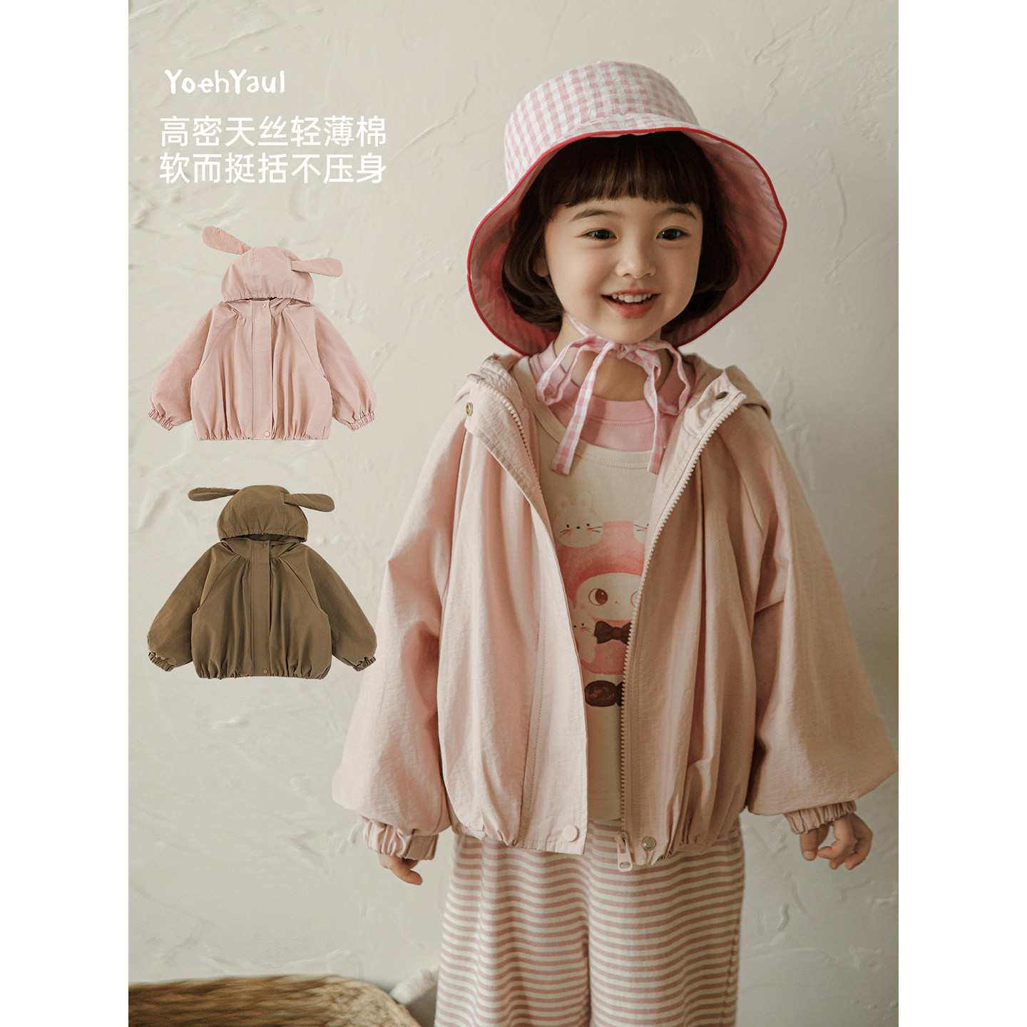 幼悠女童2026春季新款连帽兔耳外套防水轻薄宽松儿童可爱上衣春装