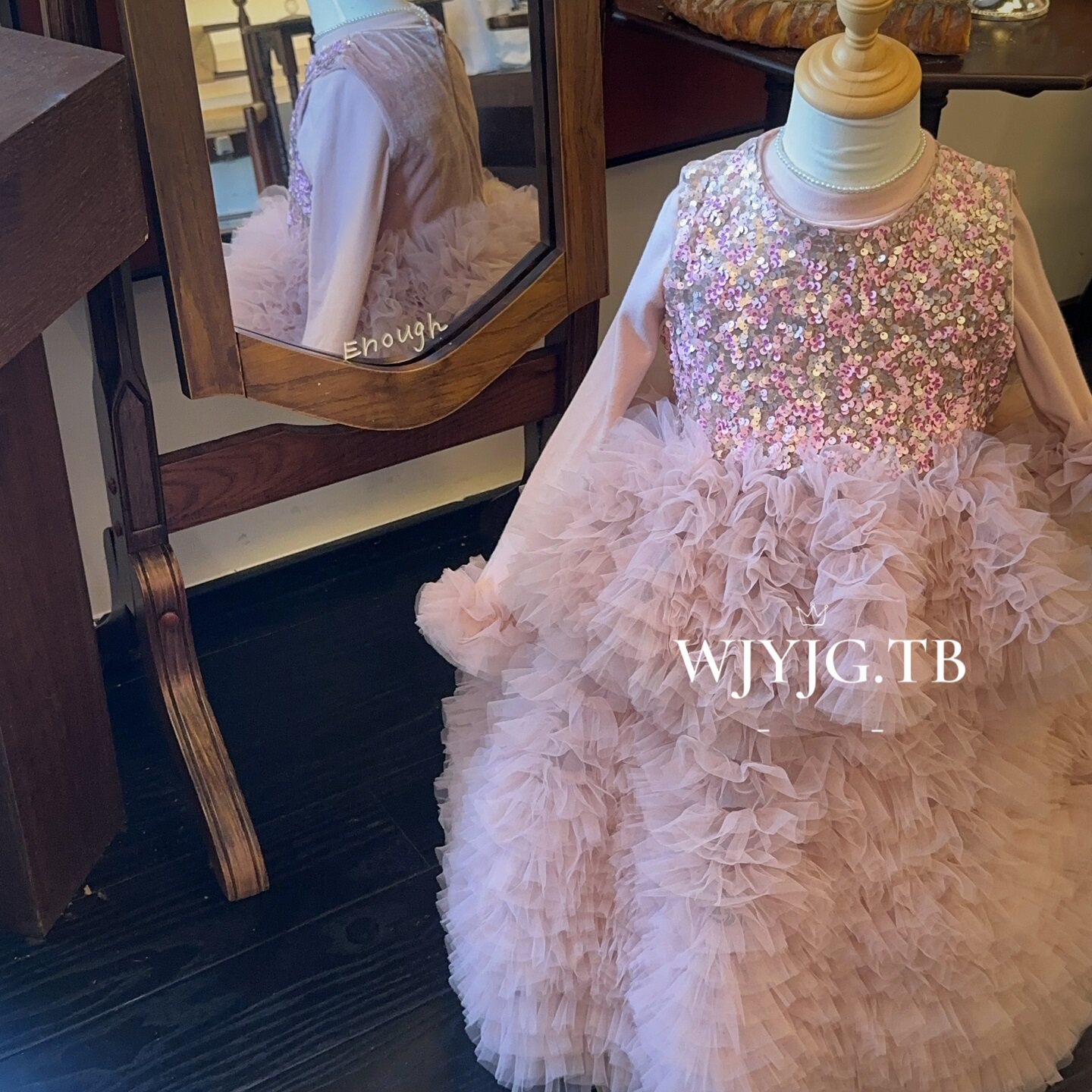 女童粉色网纱蛋糕蓬蓬裙秋冬款亮片连衣裙高端生日礼服仙女公主裙