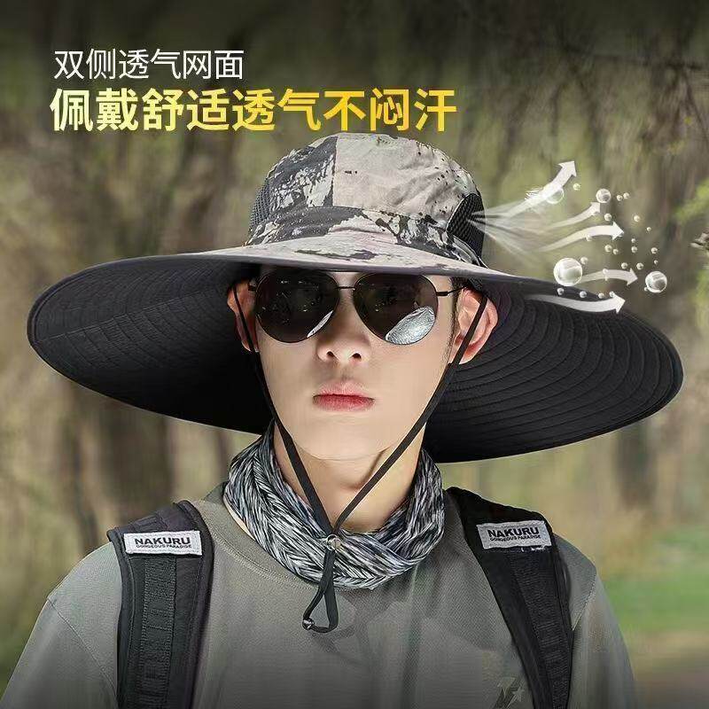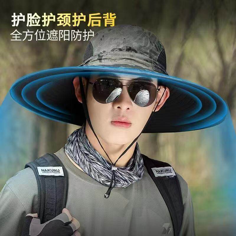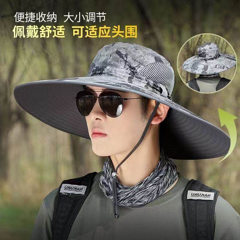 防晒帽男帽子男新款男士帽子防尘遮阳帽大帽檐特大号钓鱼50到60岁