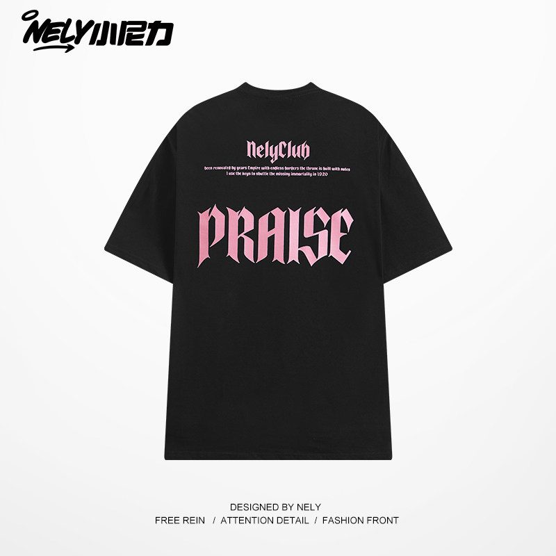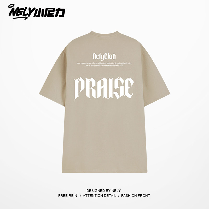 潮牌t恤男青少年夏季纯棉宽松五分半袖初高中学生酷帅气短袖上衣