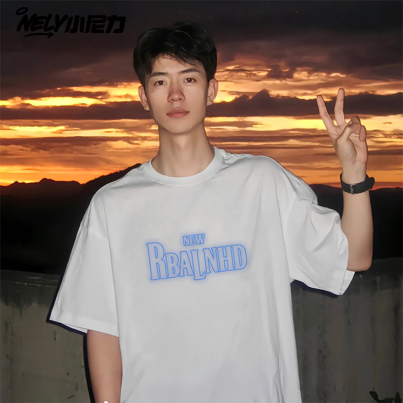 青少年重磅纯棉短袖t恤男夏季宽松港风半袖初高中学生潮流五分袖