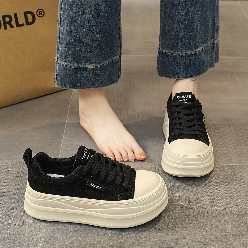 【商场同款】春季配阔腿裤厚底板鞋女鞋2026新款小个子增高百搭运
