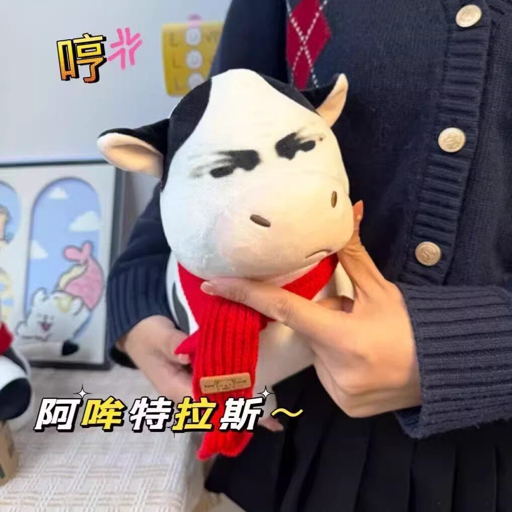 新款阿哞特拉斯丑萌草地牛毛绒玩具可爱小牛抽象表情玩偶生日礼物