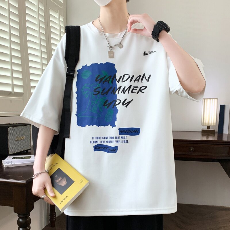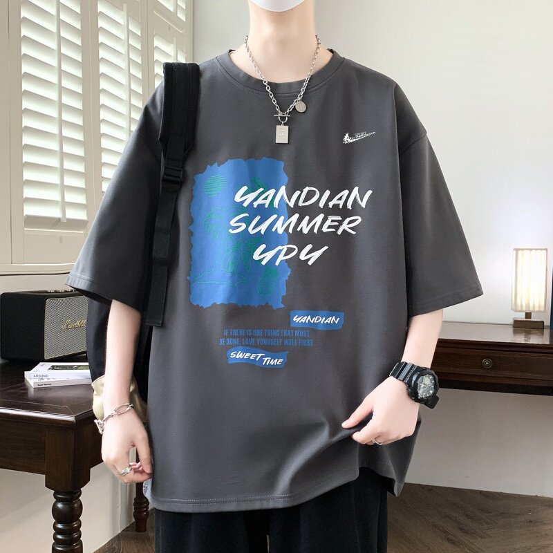 耐克顿短袖男士夏季薄款潮流印花圆领T恤青少年宽松大码休闲上衣