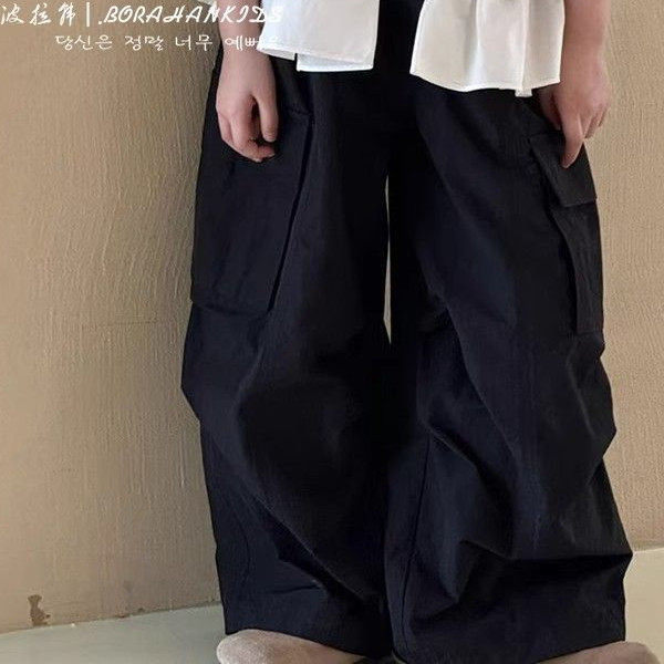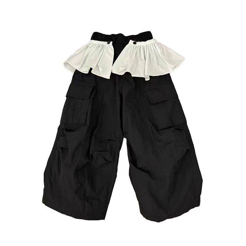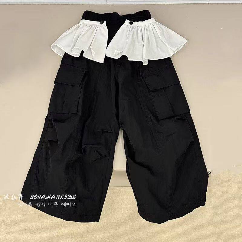 工装裤女款2025新款女童独特超好看裤子春夏季网红炸街黑色女大童