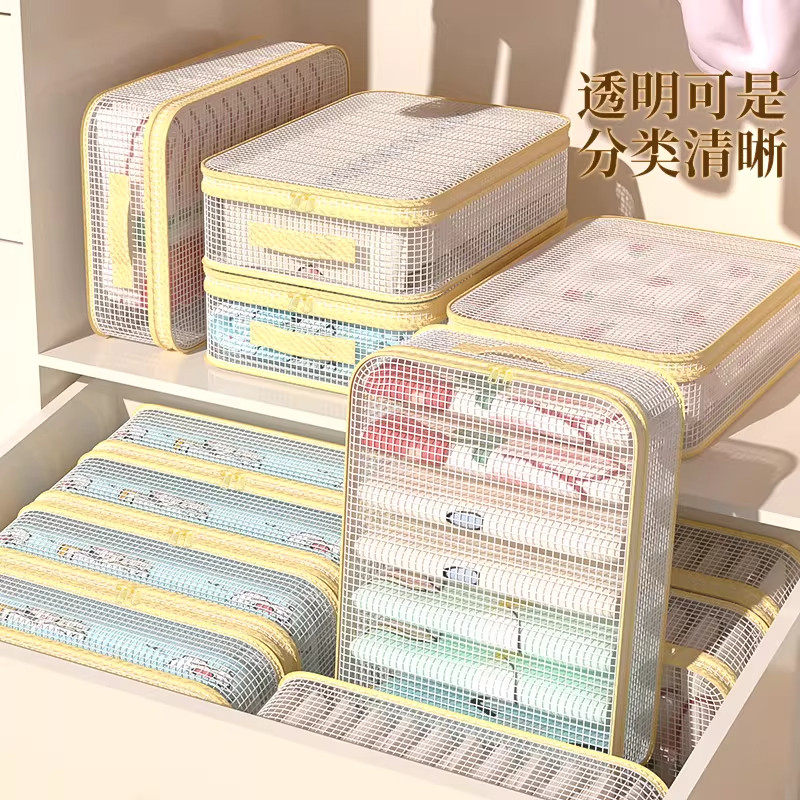 网纱四件套收纳袋家用卧室大容量防尘防潮整理盒可视窗被子防尘袋