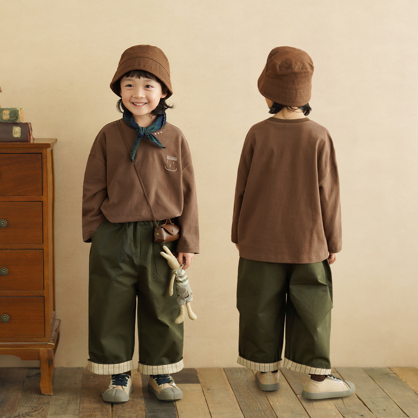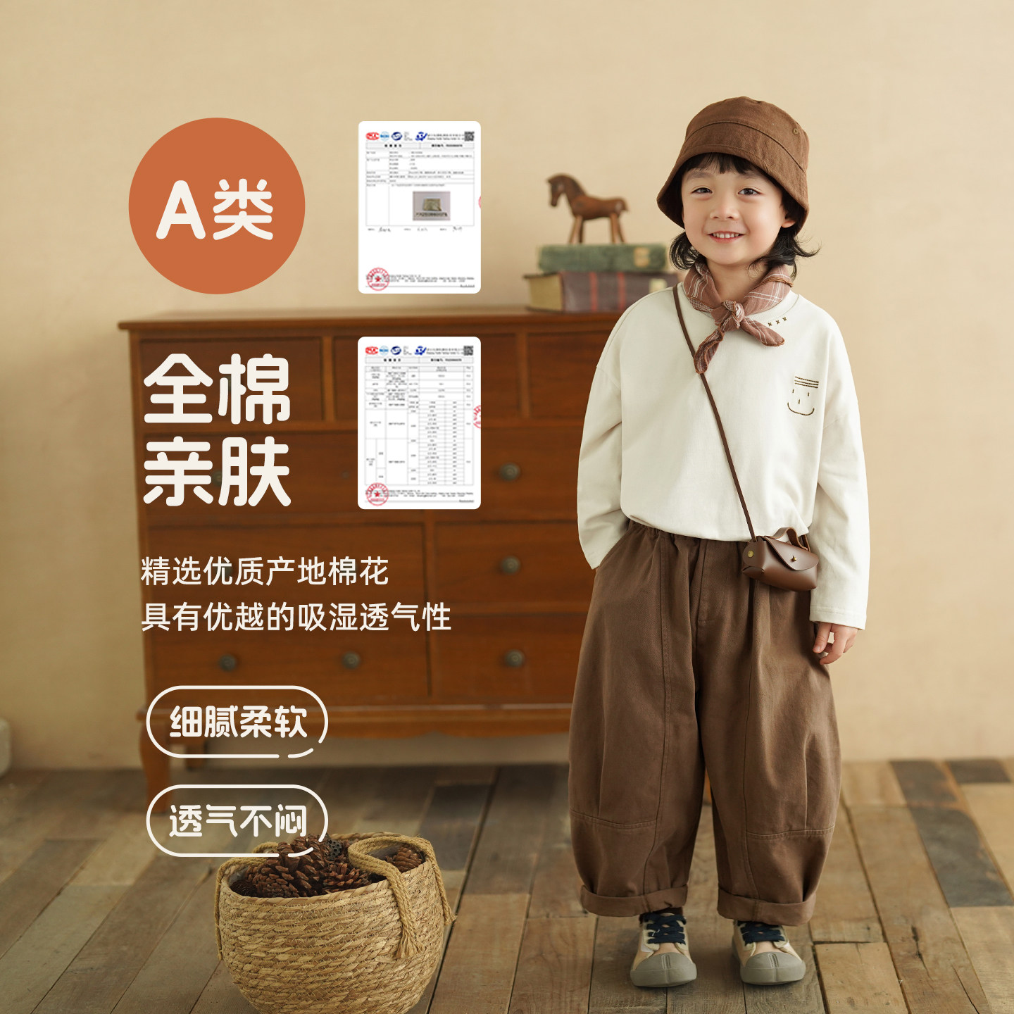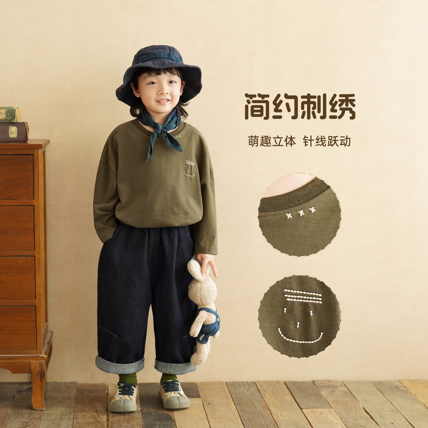 砚台家儿童纯棉A类长袖T恤春秋款童装男童笑脸刺绣上衣男孩打底衫