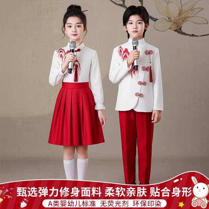 儿童初中小学生女童中国风合唱诗歌红色爱国朗诵演讲比赛演出服装