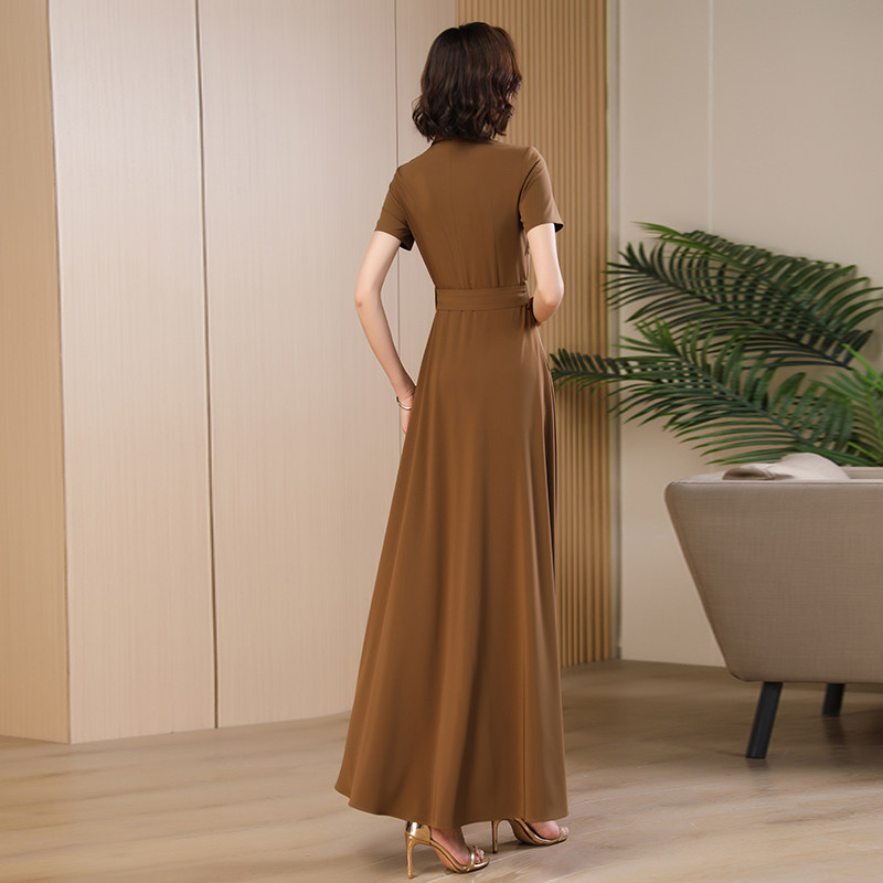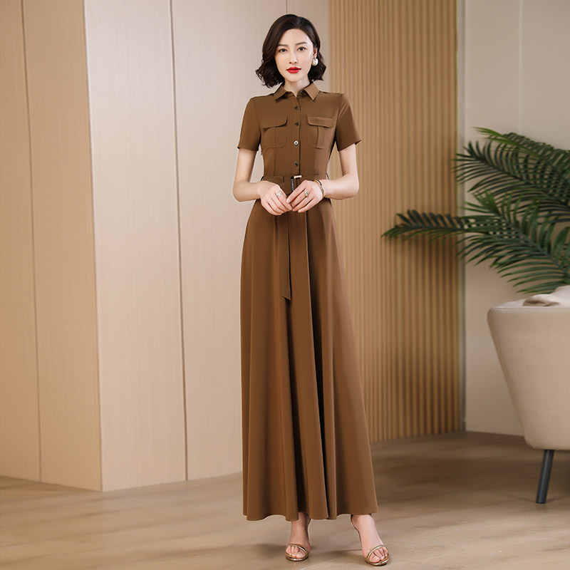 大牌高端连衣裙气质收腰polo领2026夏季新款显瘦超长裙到脚踝1743