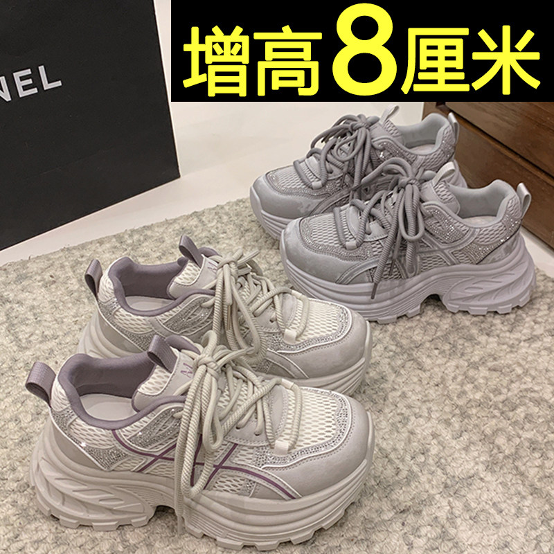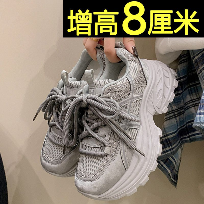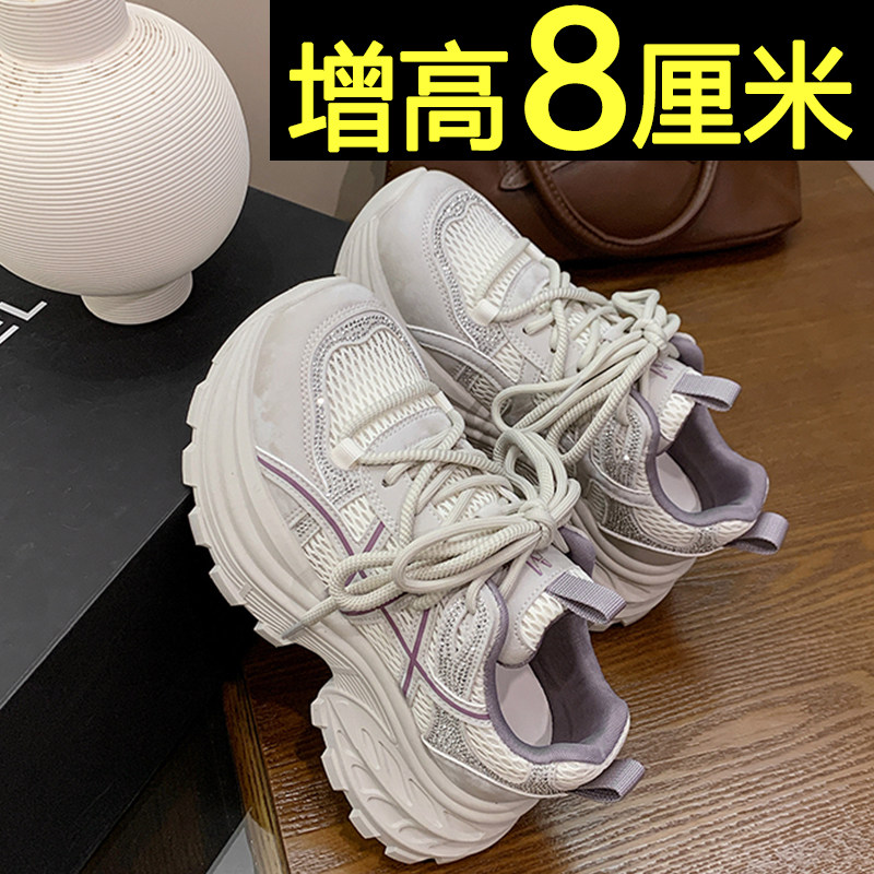松糕休闲老爹鞋女2026新款春季网面透气厚底女鞋轻便内增高运动鞋