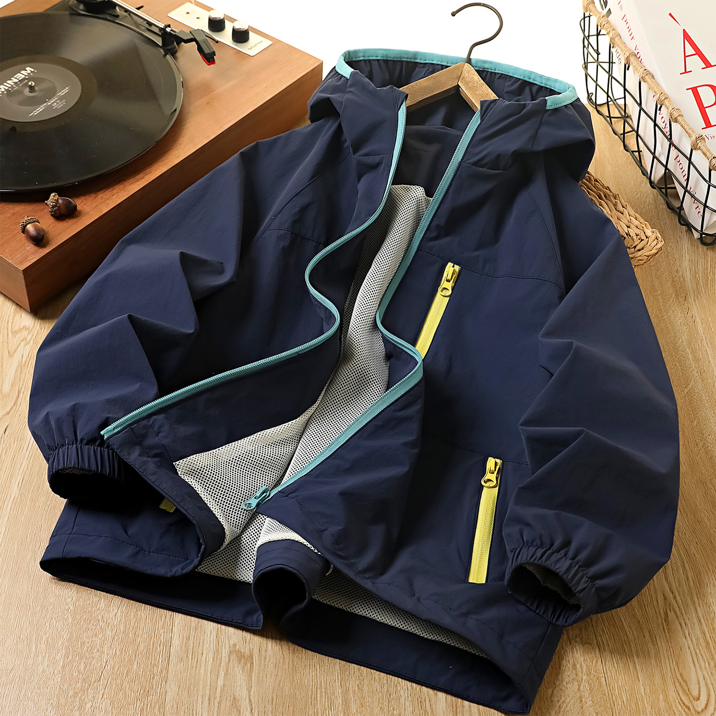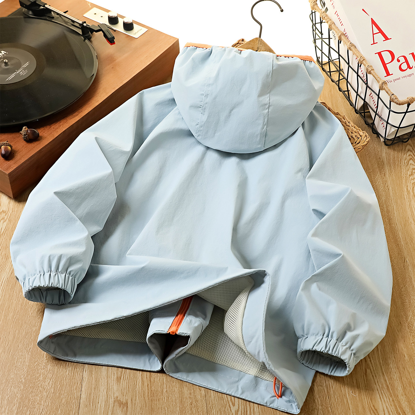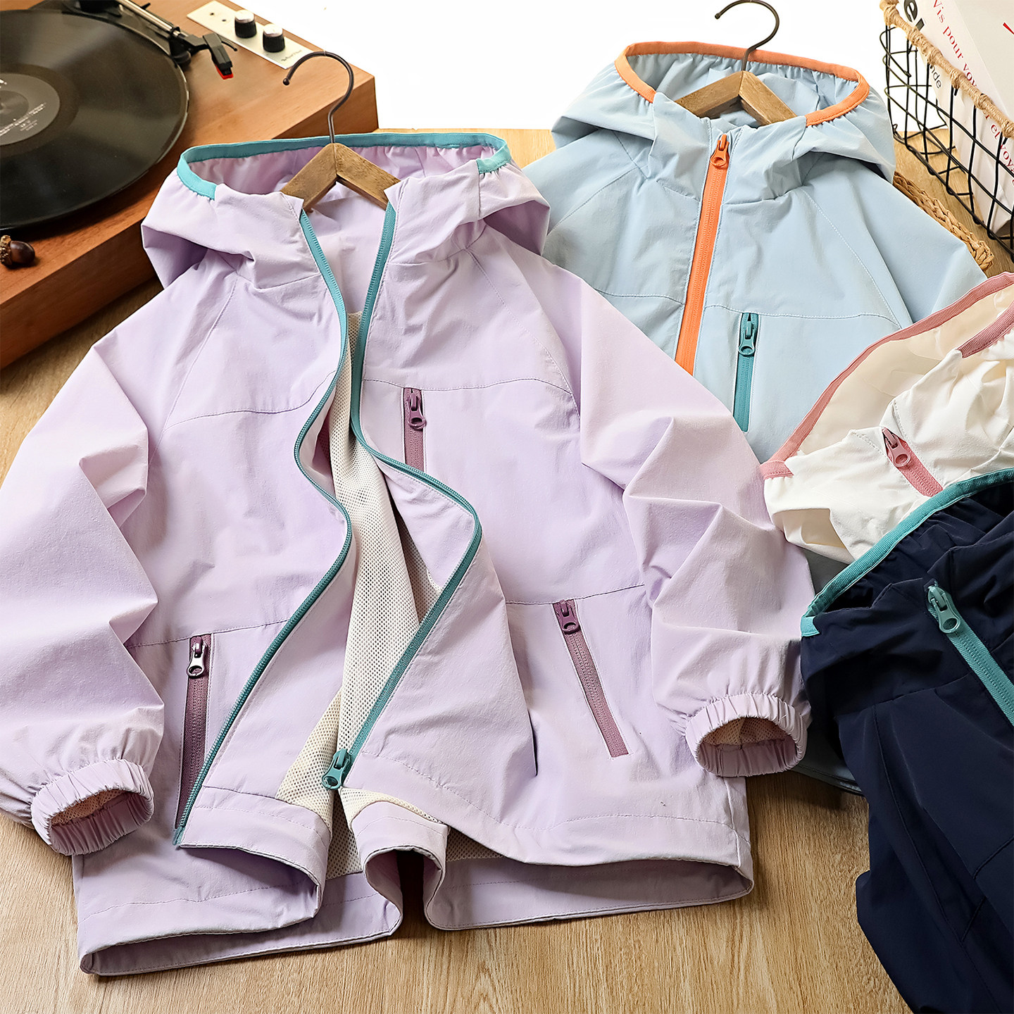 男童冲锋衣外套儿童休闲防风衣女童拉链衫春秋薄款中大童连帽上衣
