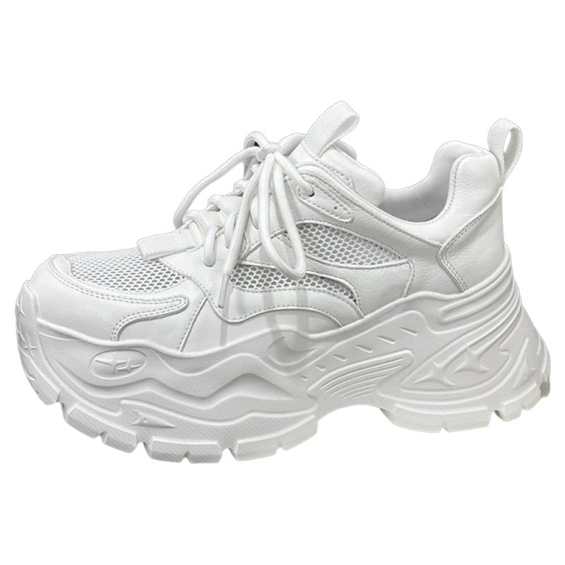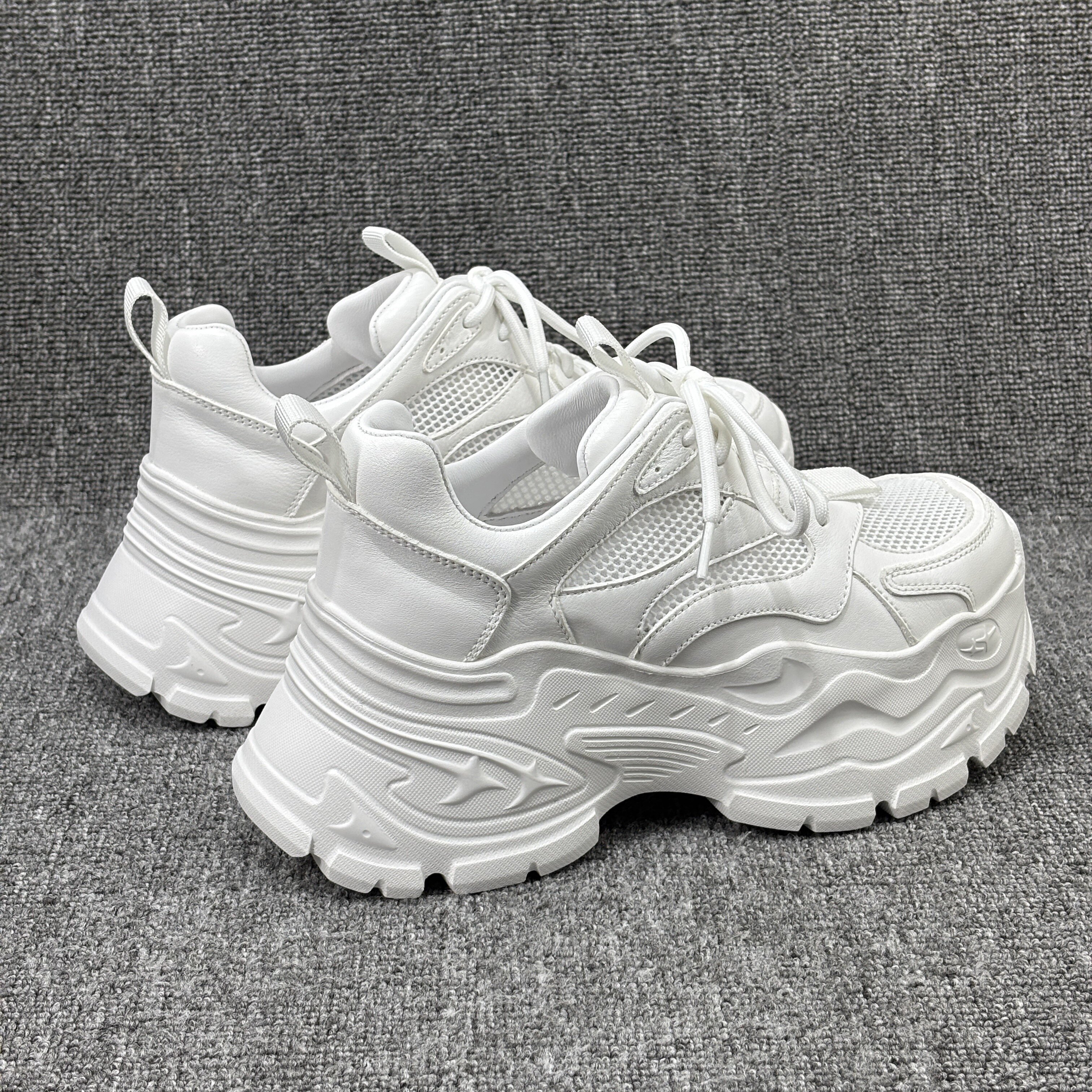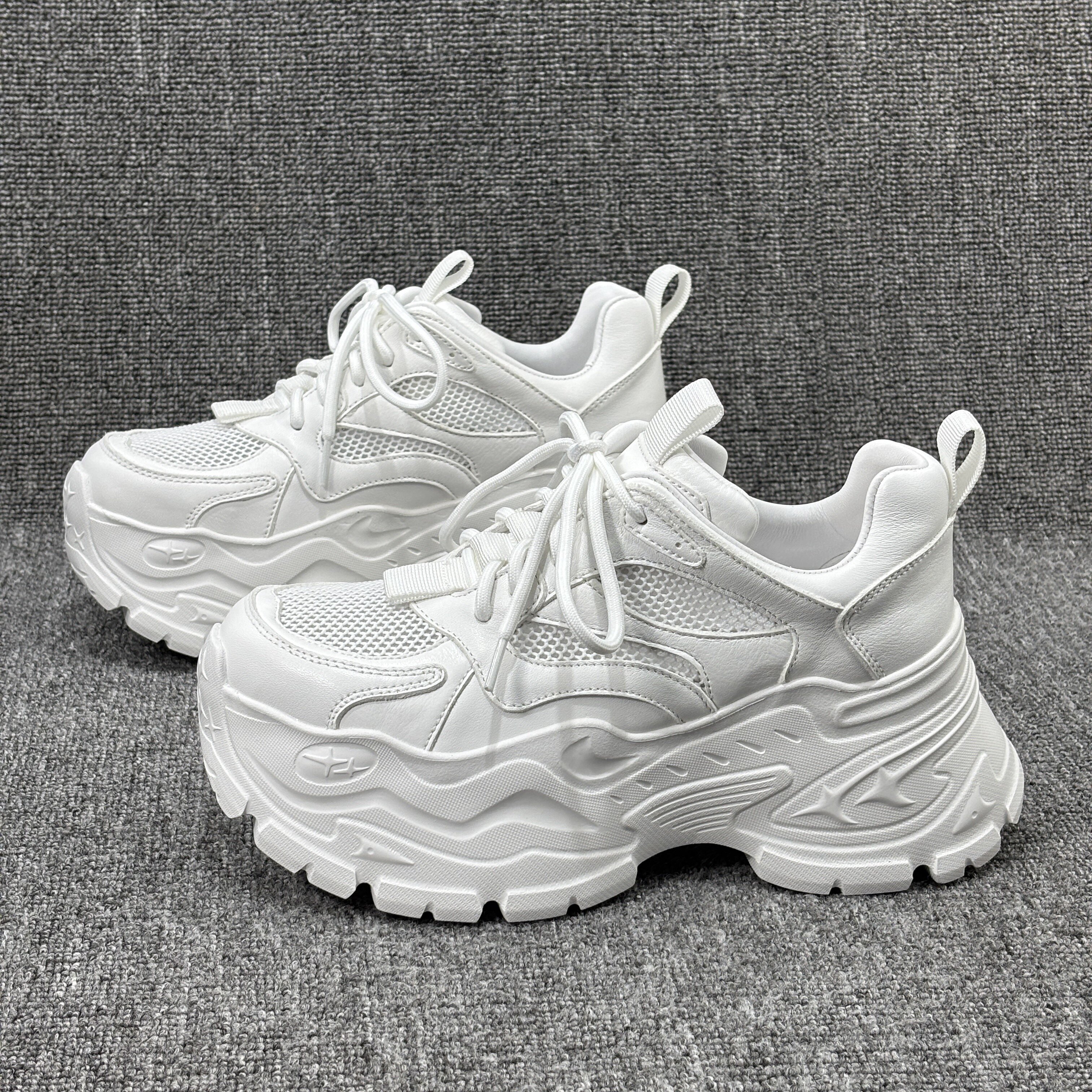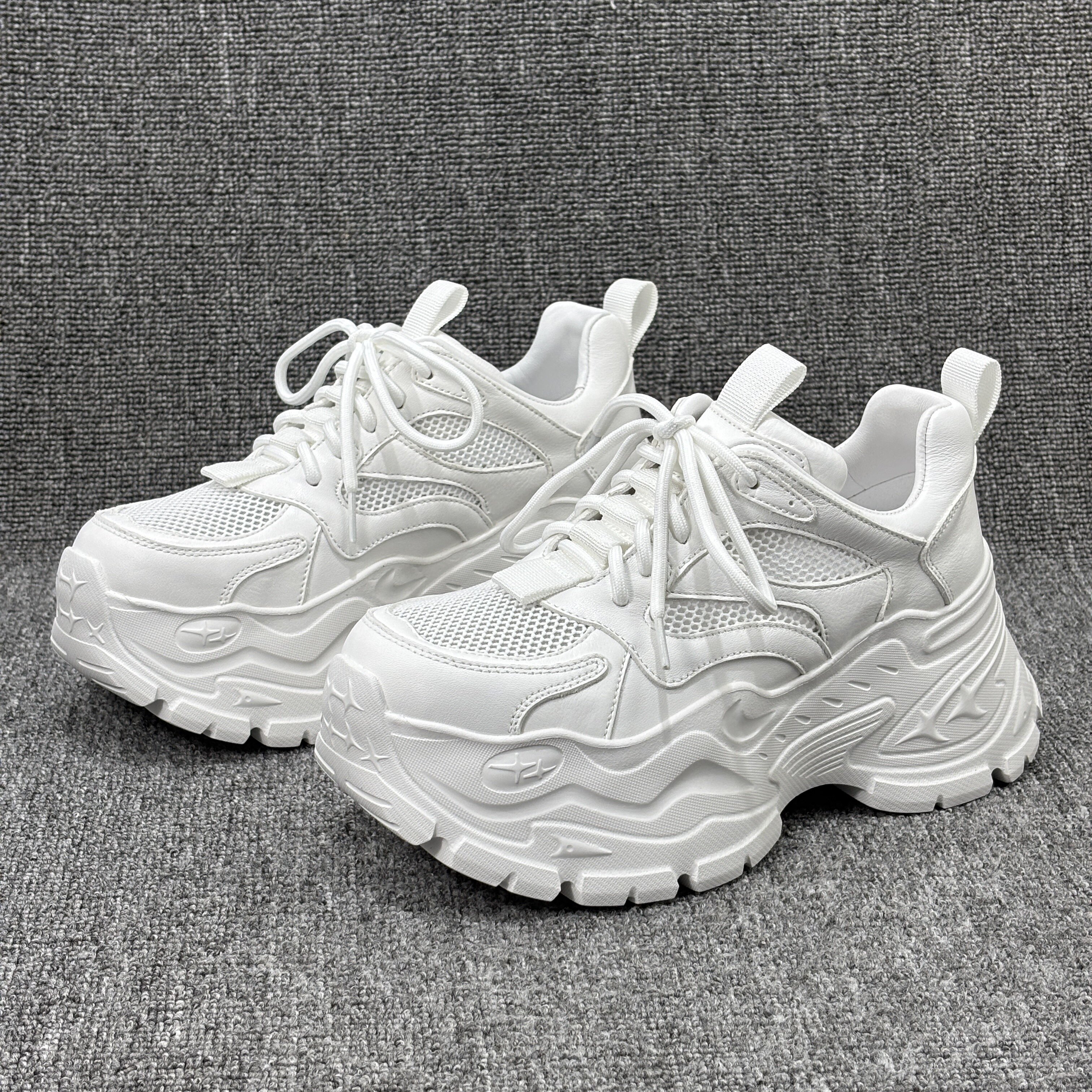 欧洲站2026新款真皮松糕厚底小白鞋欧货增高透气网面老爹鞋女夏款