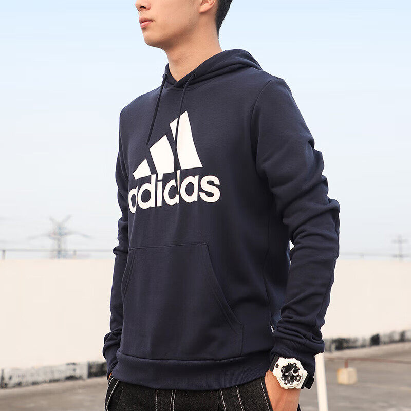 阿迪达斯蓝色卫衣男秋季新款休闲运动服篮球连帽衫宽松外套套头衫