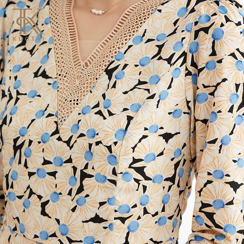 阔太法式长袖碎花v领连衣裙女2025年夏季温柔风中长款荷叶边裙子