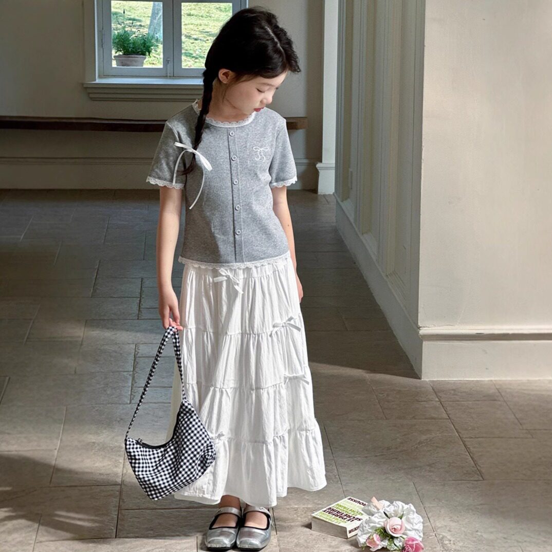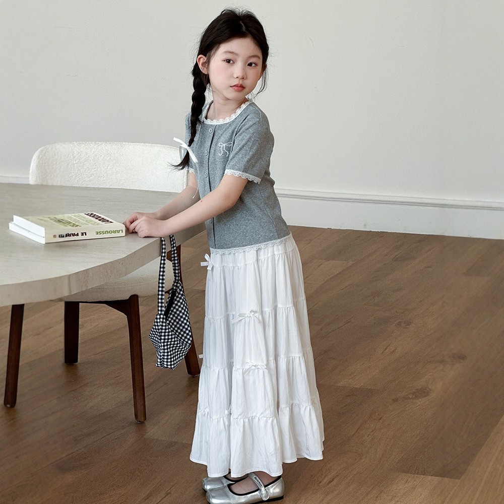 女童时尚花边短袖半身裙夏新款女孩T恤蛋糕裙套装中大童休闲长裙