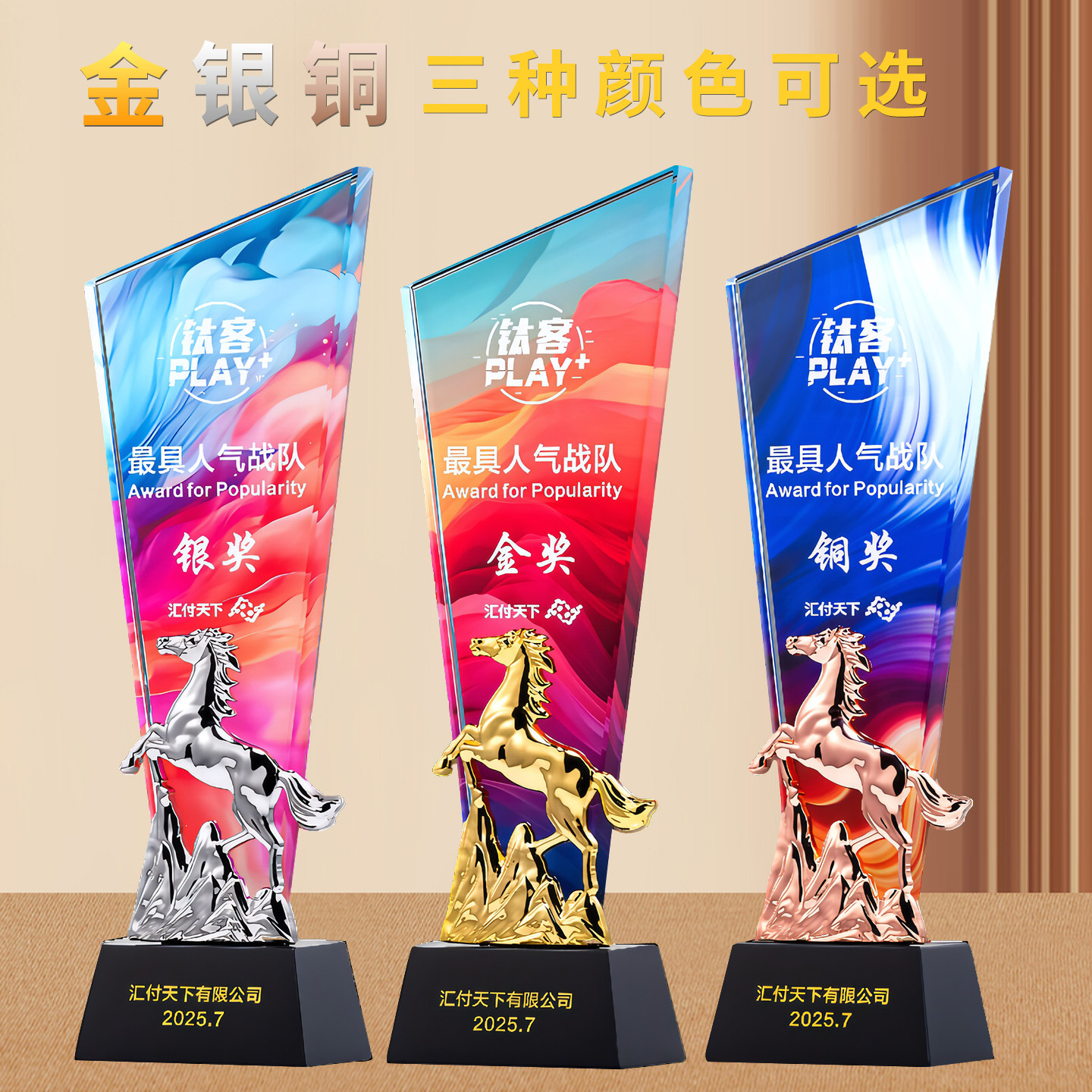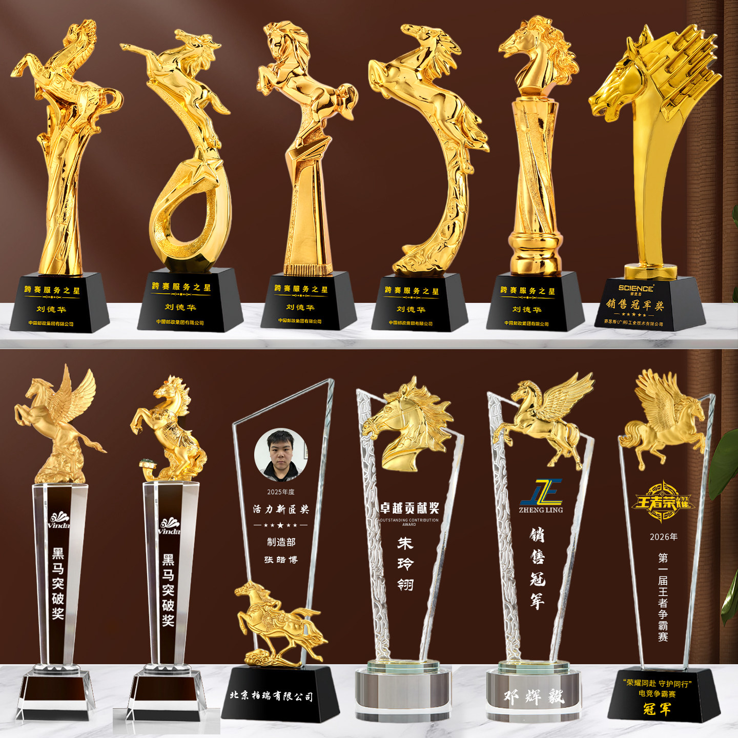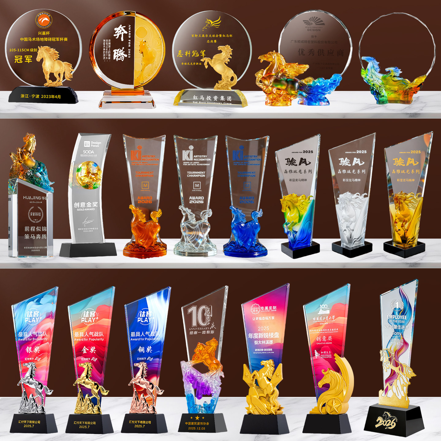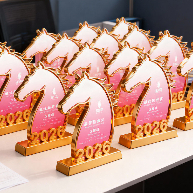 马年奖杯定制水晶金属定做高档琉璃2026新款创意年会优秀员工销冠