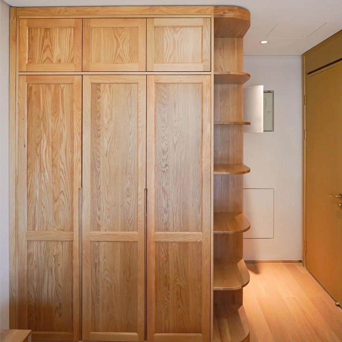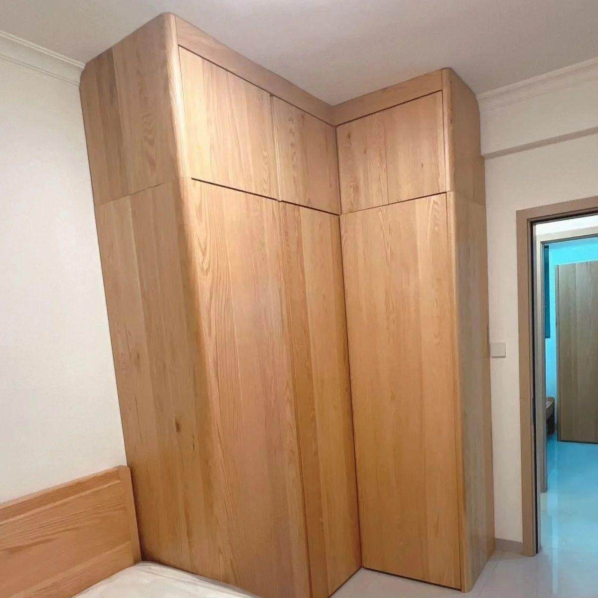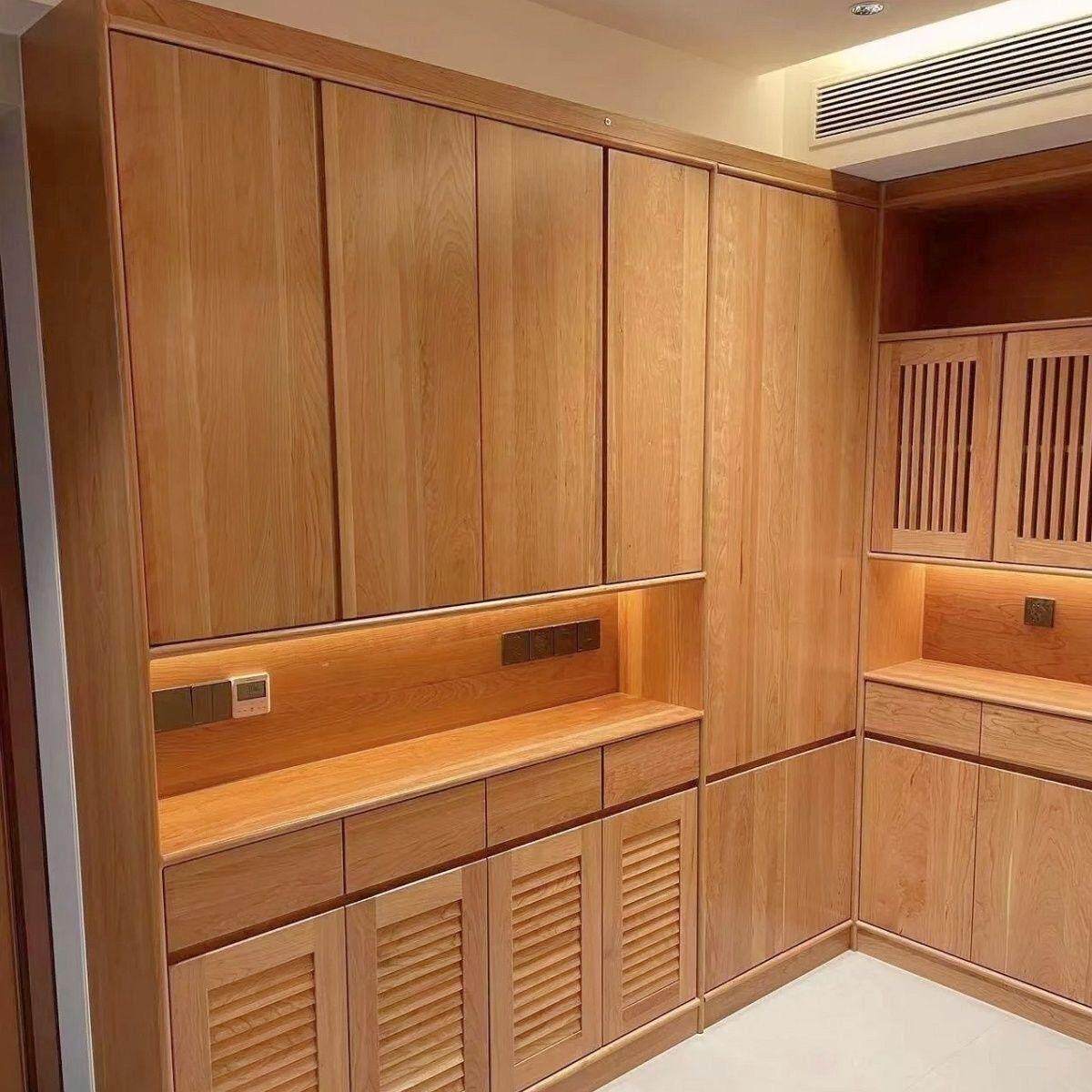 广州厂家定制全实木衣柜松木橡木樱桃木拉门收纳柜整体大板衣柜