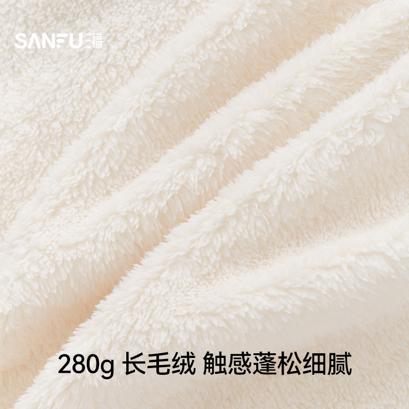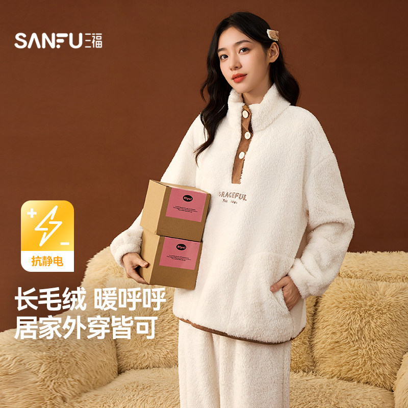 #三福女冬季长毛绒抗静电家居服套装 半纽扣立领外穿睡衣508355